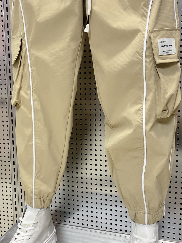 2023春秋新款工裝褲男潮牌束腳寬松多口袋機能褲青少年運動哈倫褲