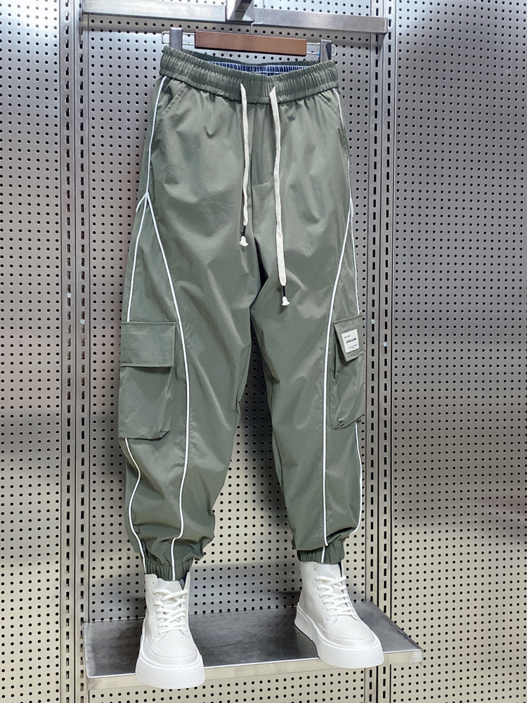 2023春夏痞帥男士休閑褲純色百搭潮流束腳工裝褲青少年百搭哈倫褲