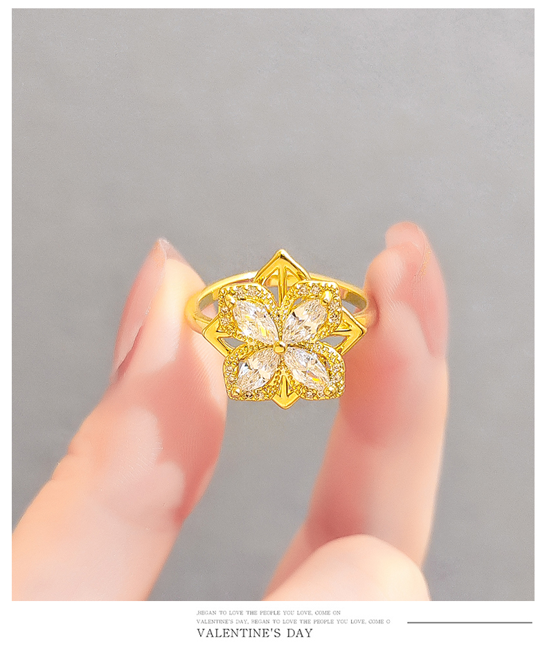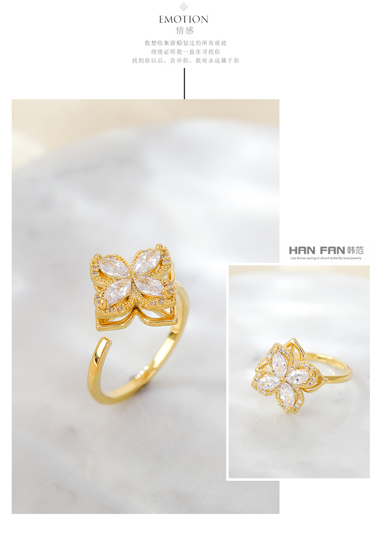 可旋轉四葉草戒指女2023年新款網紅爆款可調節開口戒法式復古尾戒