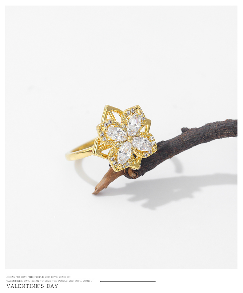 超仙花瓣水晶戒指女ins時尚可調節開口戒小眾設計感食指指環尾戒