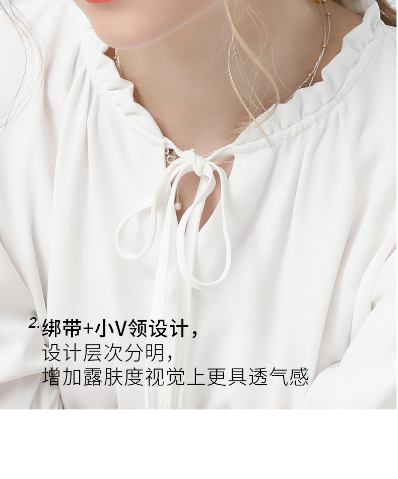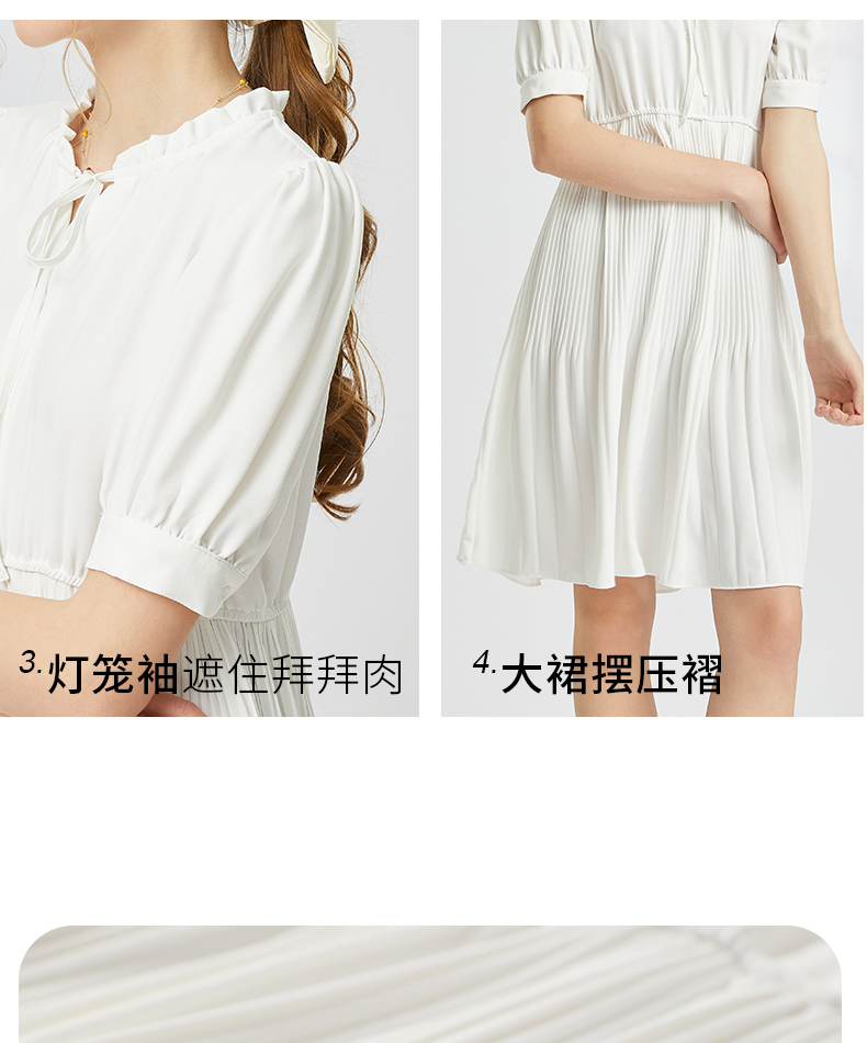 假日概念燈籠袖雪紡連衣裙女a字V領夏季新款小個子高腰短裙半截裙