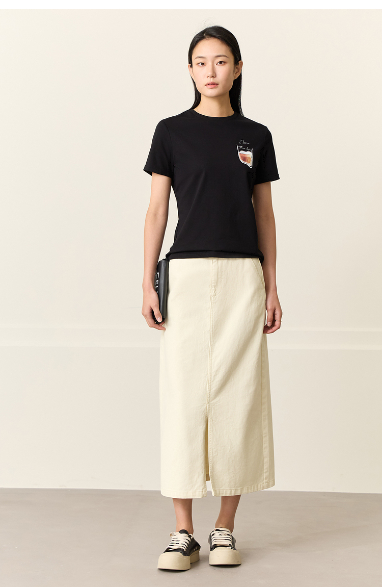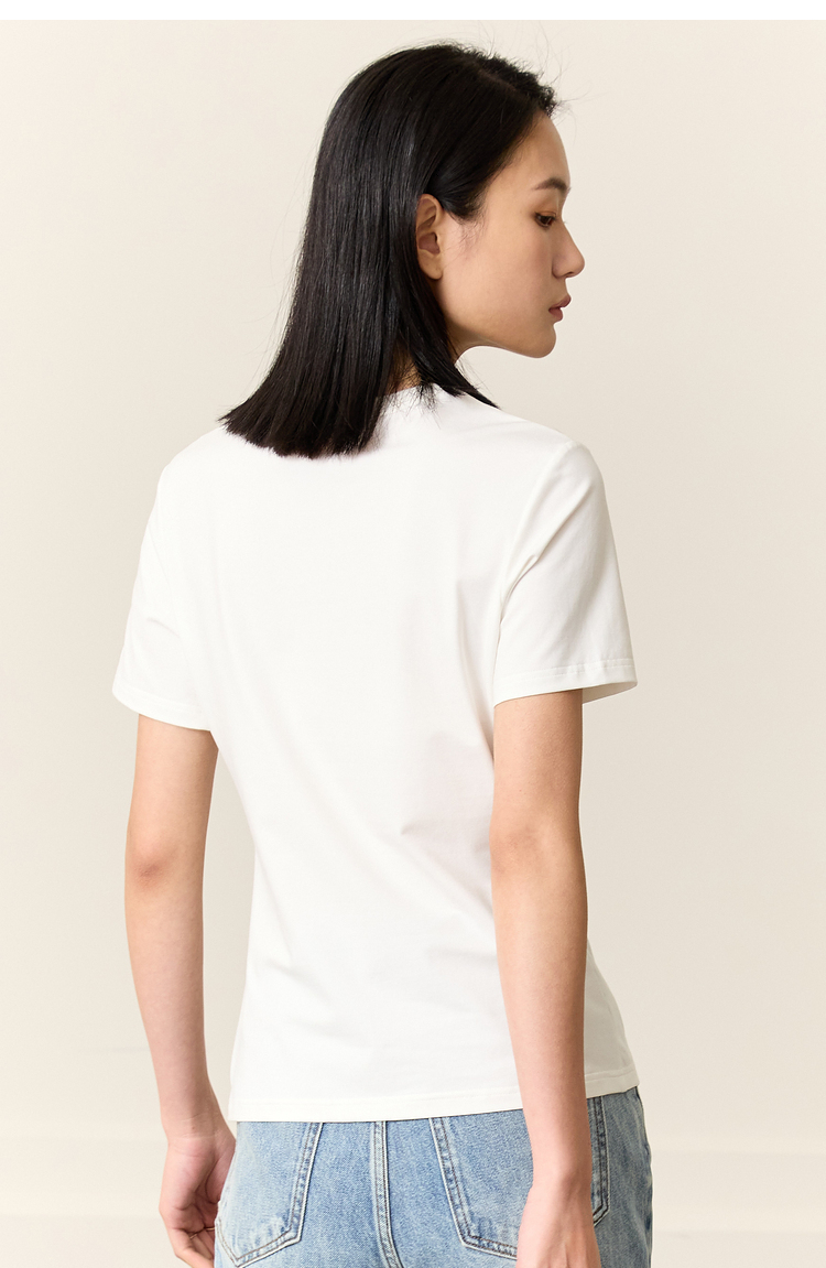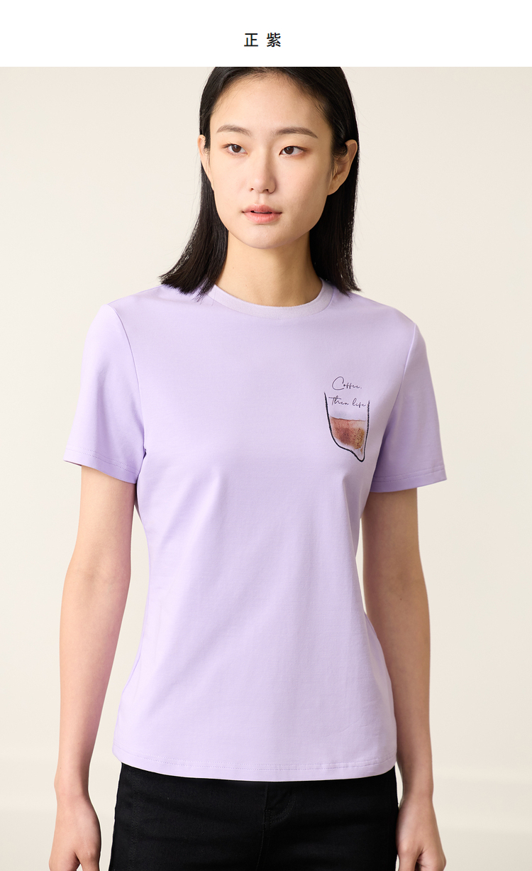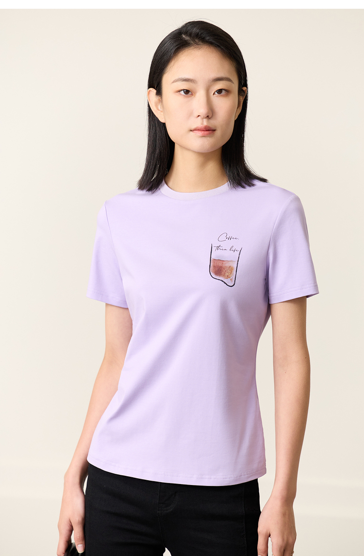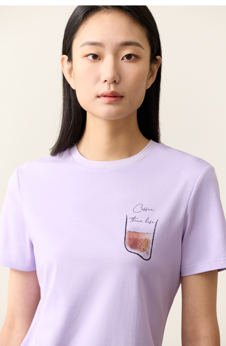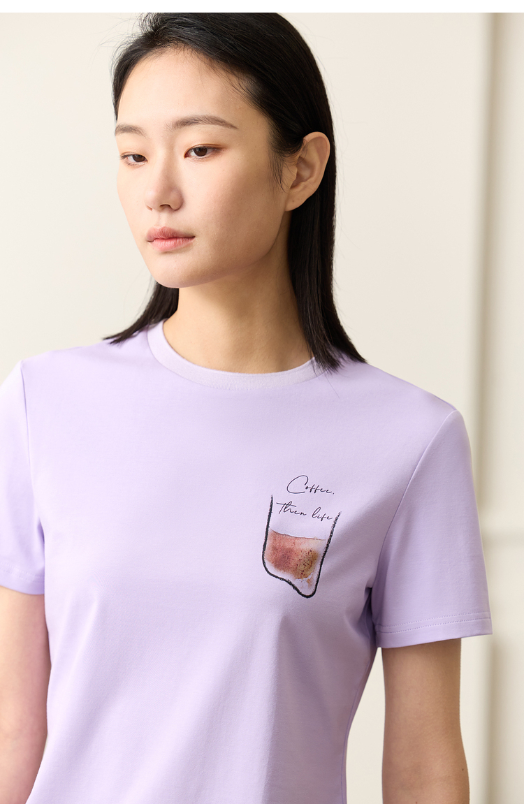 Amii2023夏新款圓領短袖趣味印花玻尿酸棉彈力T恤女百搭休閑上衣