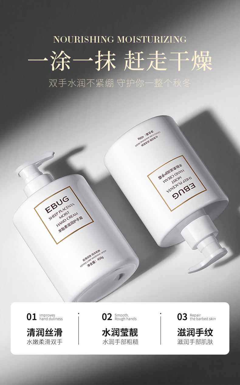 羊胎素護手霜滋潤保濕嫩白補水家用搽手油扶手霜大瓶大容量按壓式
