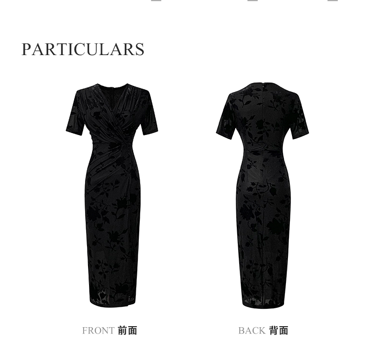 黑色修身網紗連衣裙女夏季新款別致高級感絲絨V領短袖顯瘦包臀裙