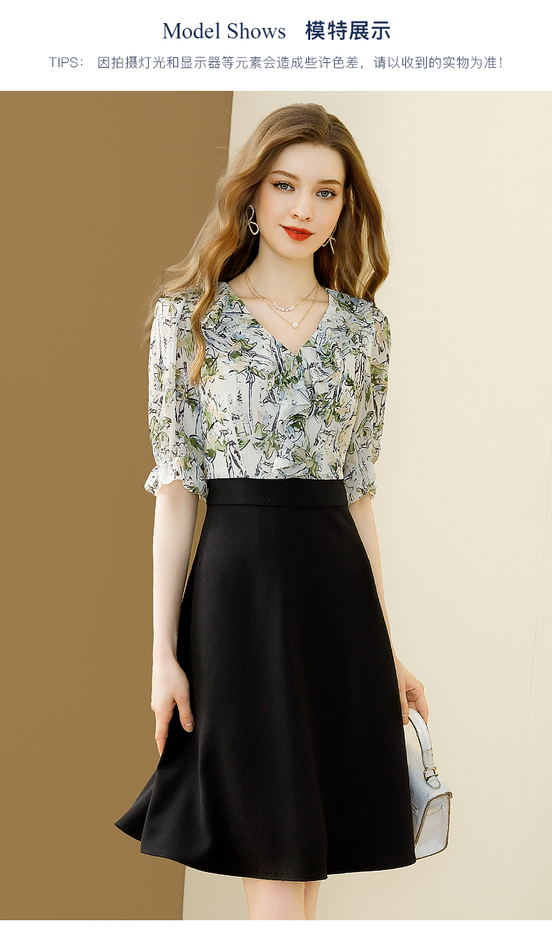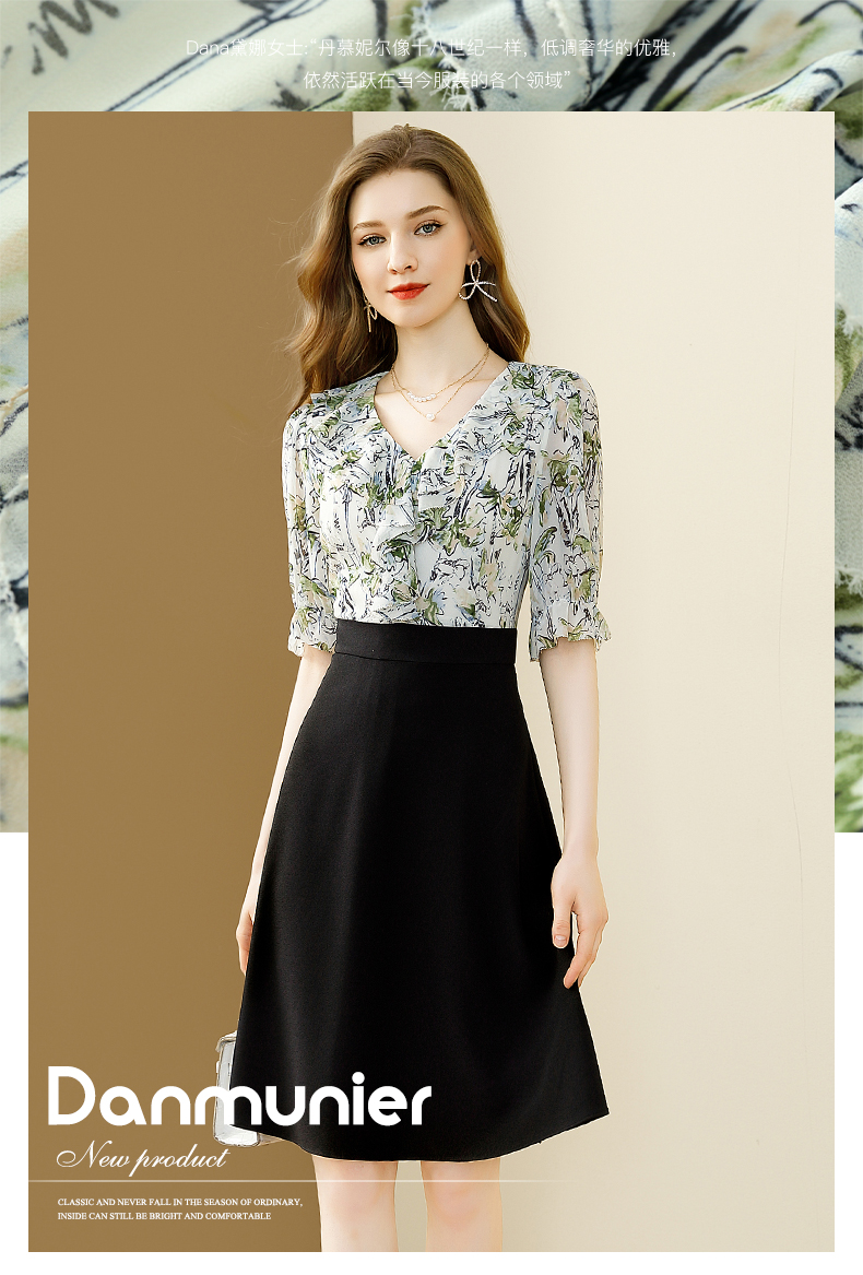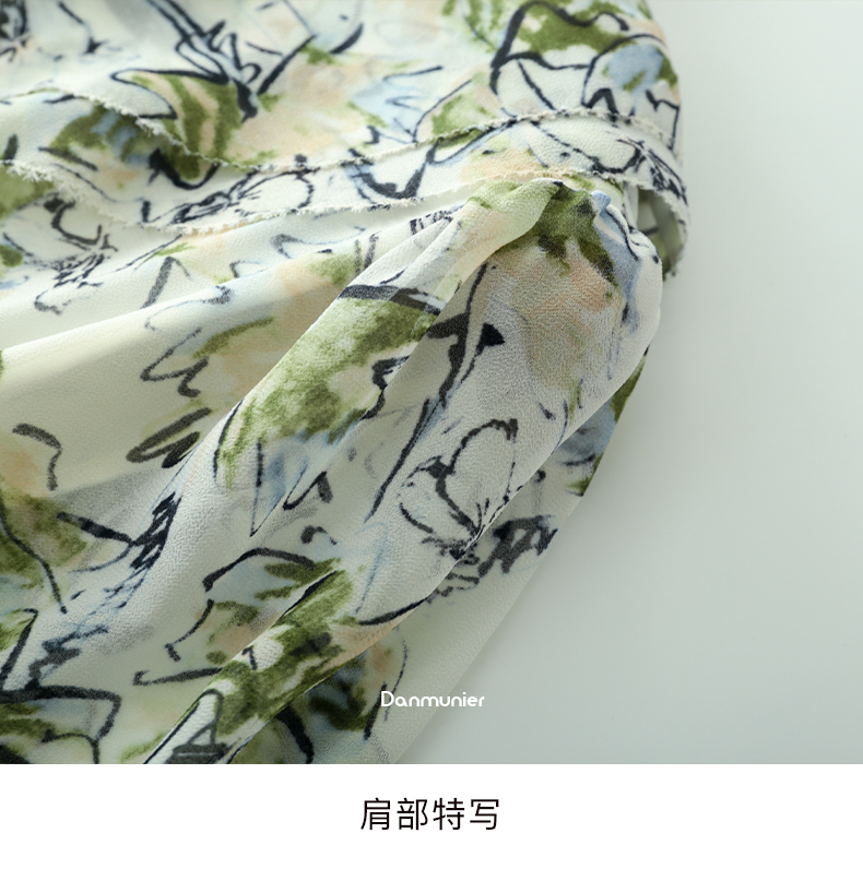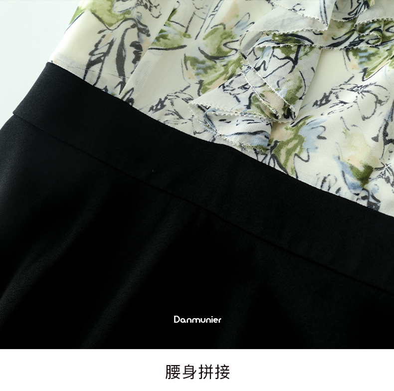 丹慕妮爾優雅印花v領連衣裙女2023夏季新款氣質荷葉邊收腰a字裙子