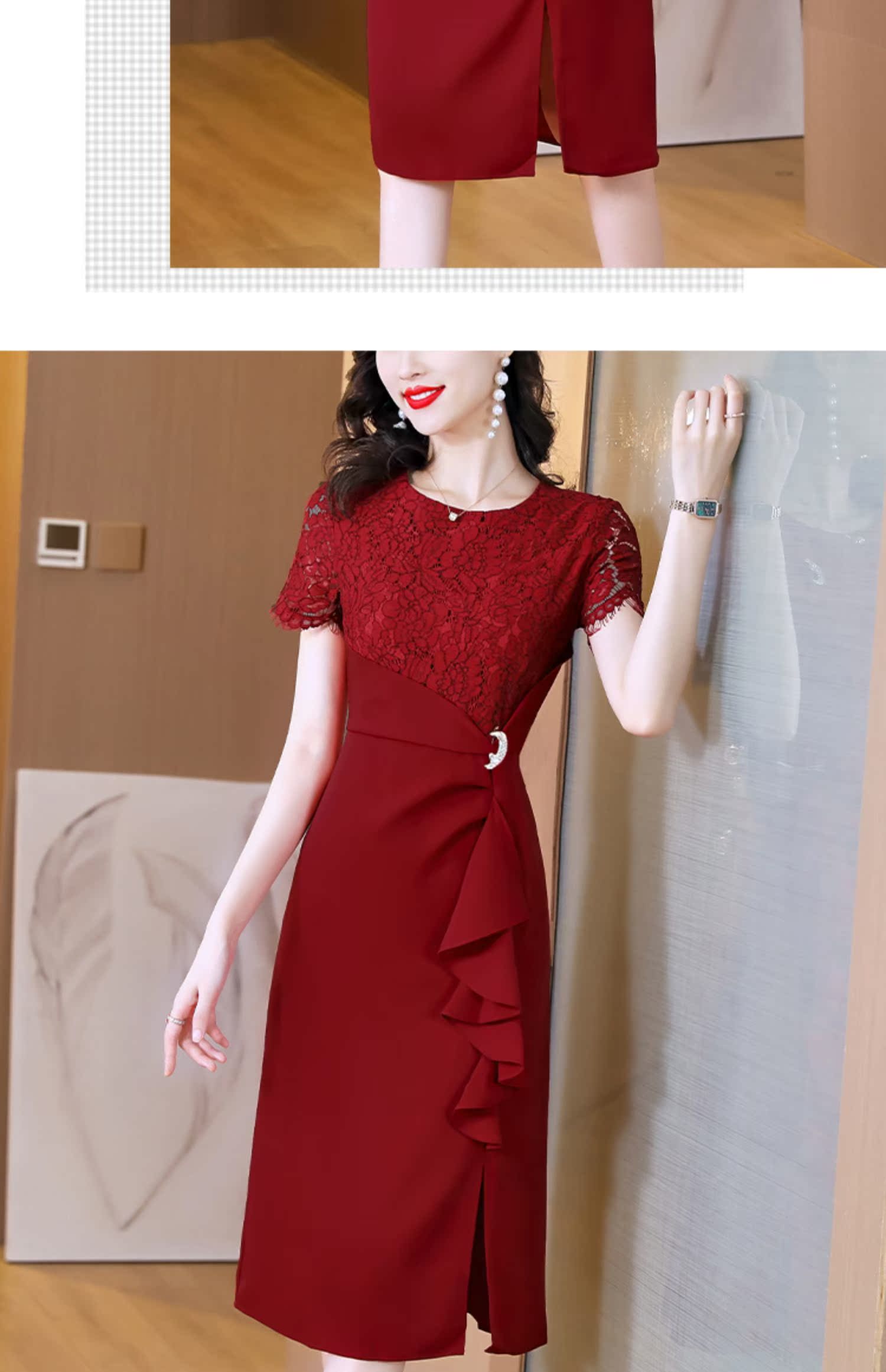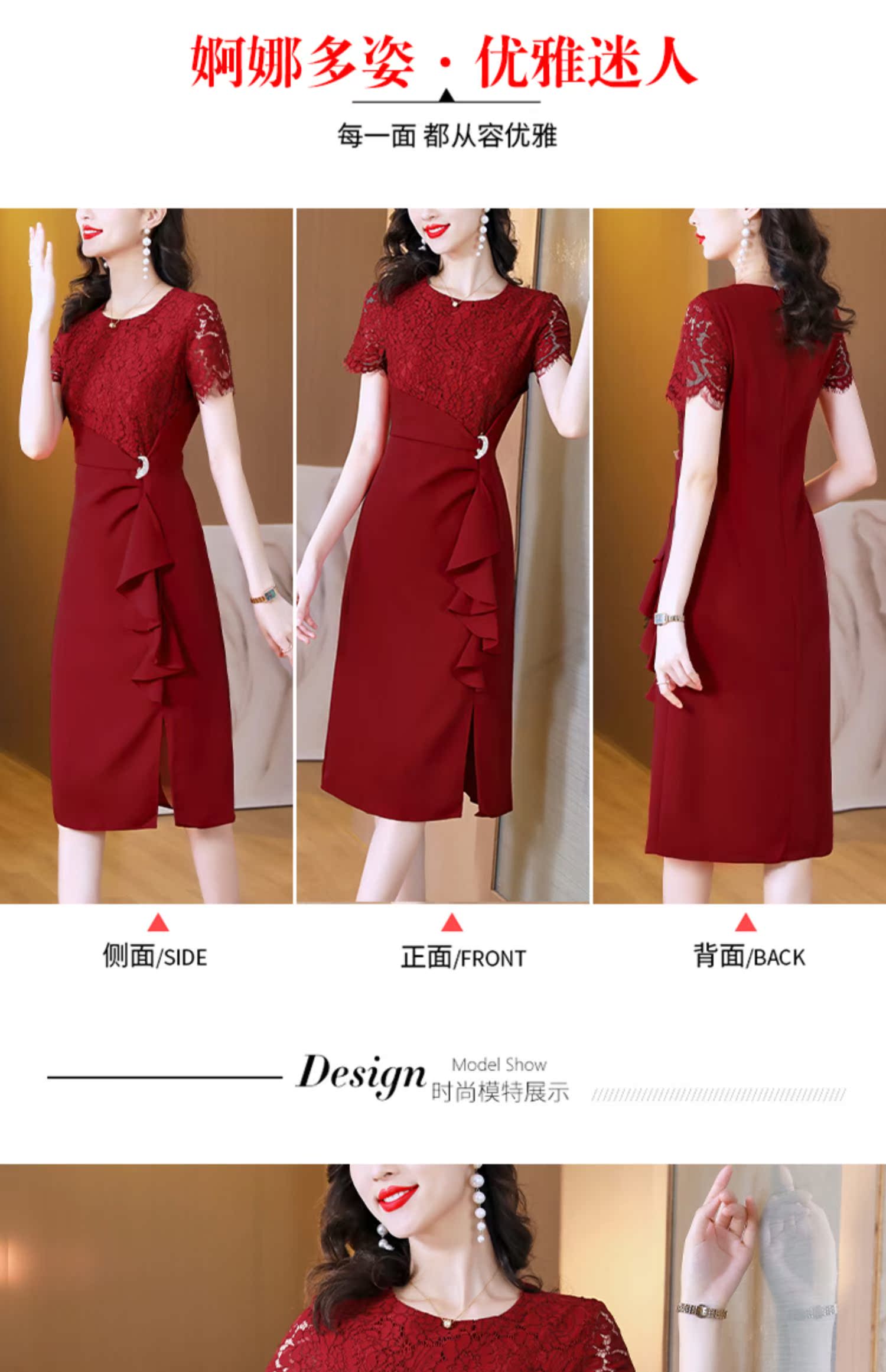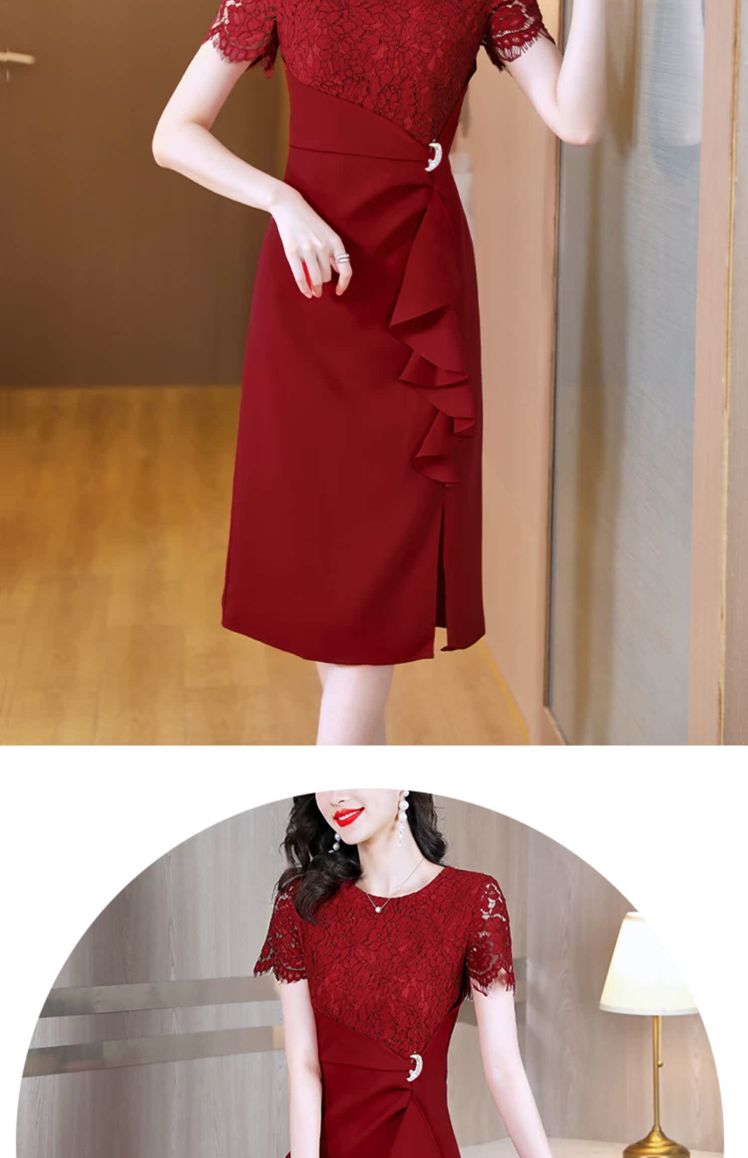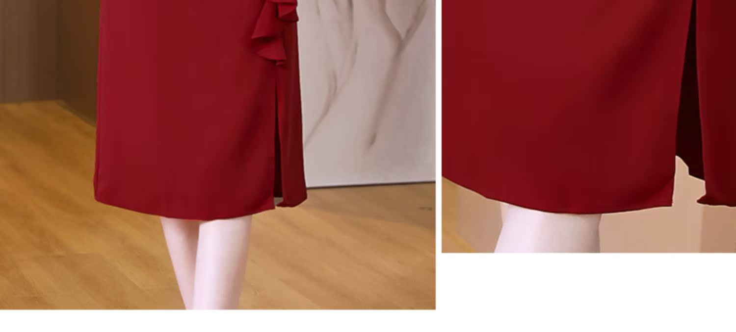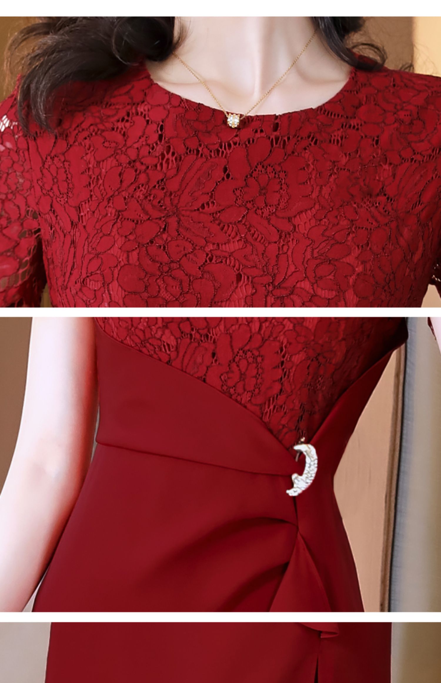 高級感丈母娘婚宴喜婆婆婚宴服連衣裙年輕媽媽結婚禮服高端酒紅色