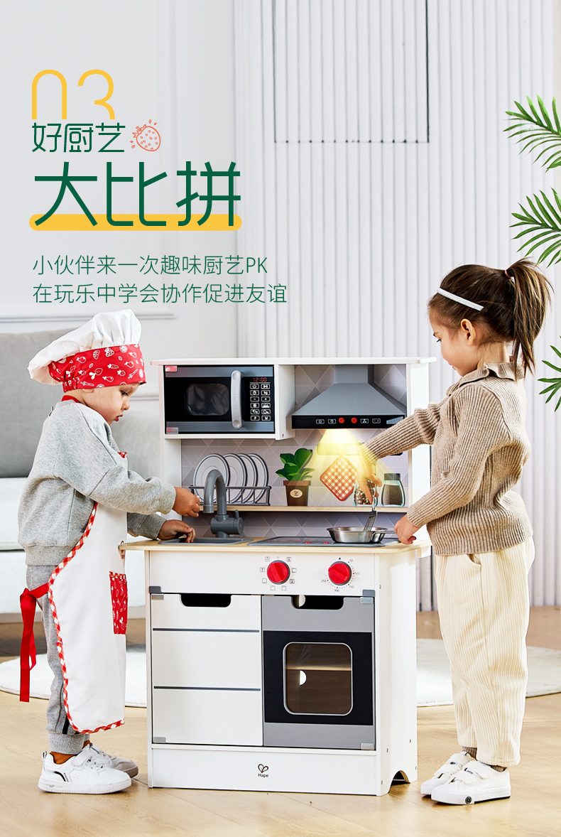 Hape廚房聲光電男女孩過家家益智仿真做飯玩具木制3歲+生日禮物