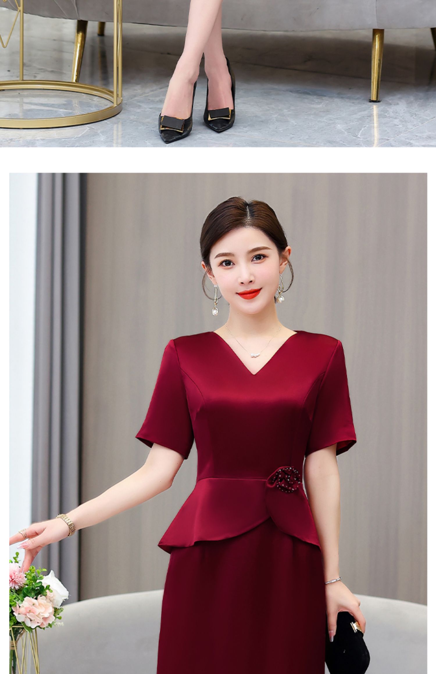 2023新款高級感醋酸緞面婚禮媽媽連衣裙喜婆婆婚宴禮服高端結婚夏