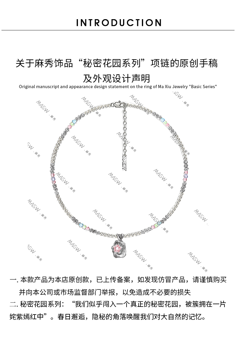 MASW麻秀原創設計秘密花園花朵吊墜串珠項鏈女高級感甜酷彩色頸鏈