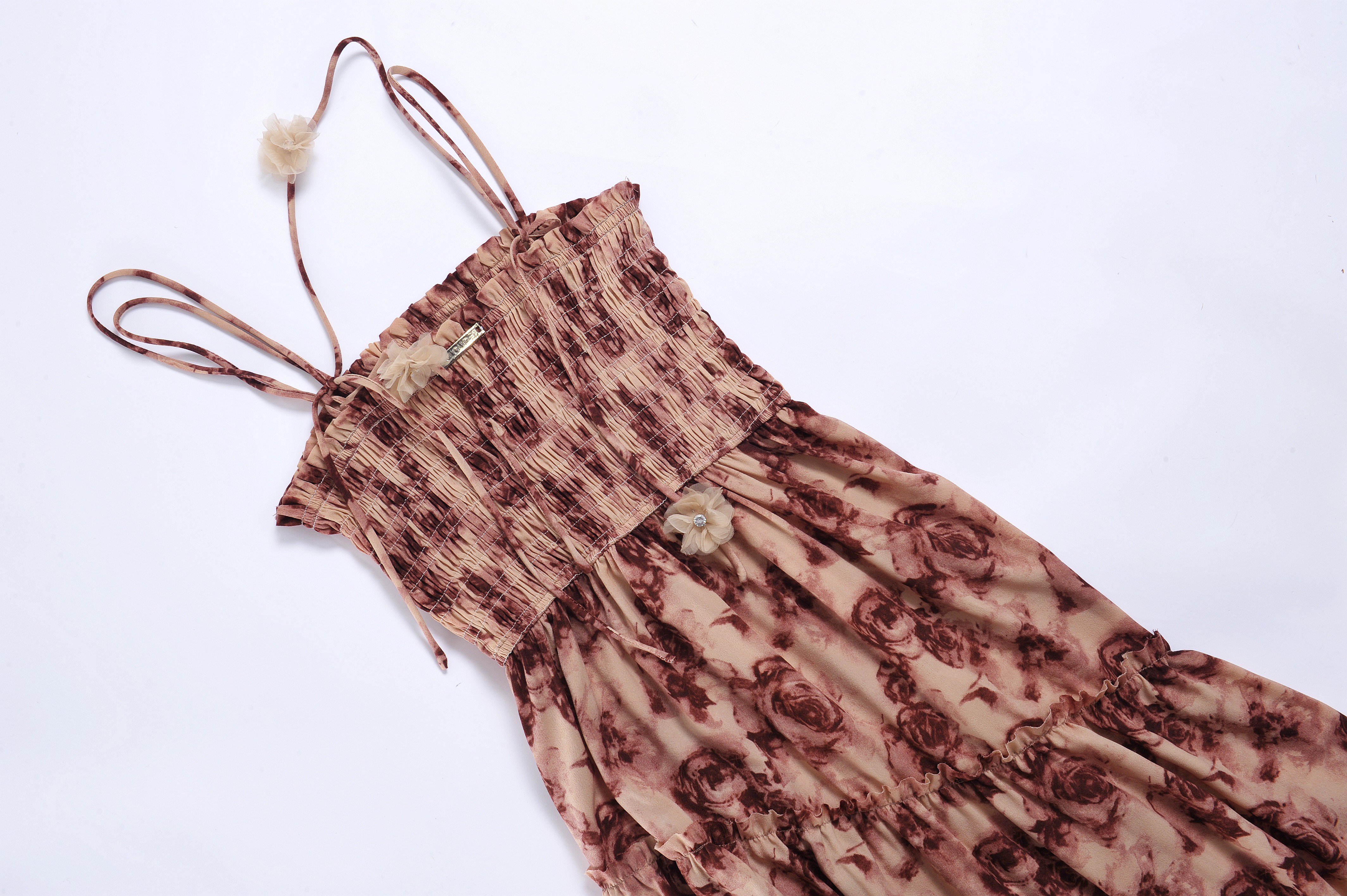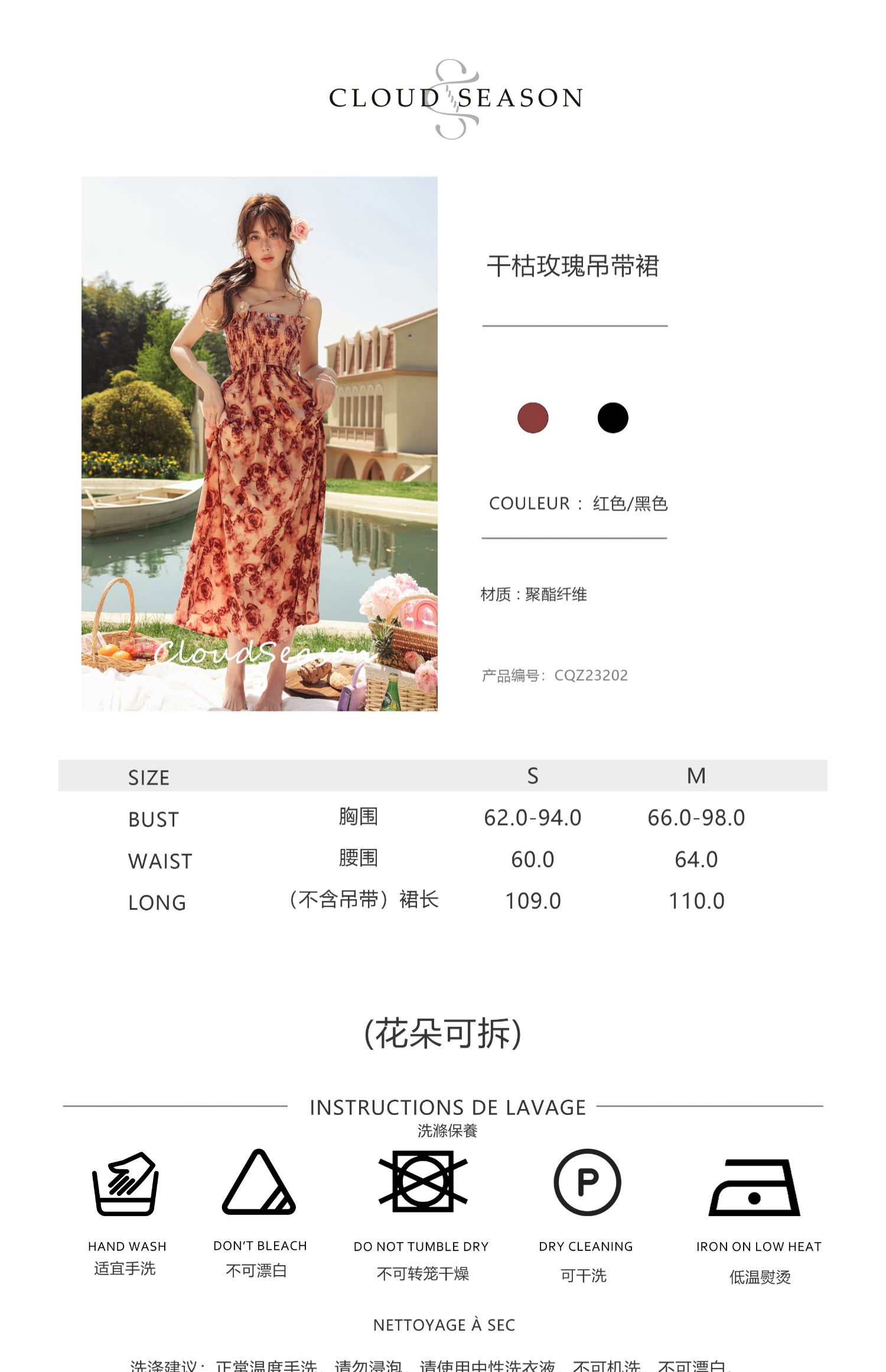 CLOUDSEASON干枯玫瑰碎花連衣裙雪紡吊帶裙法式新款氣質名媛夏季