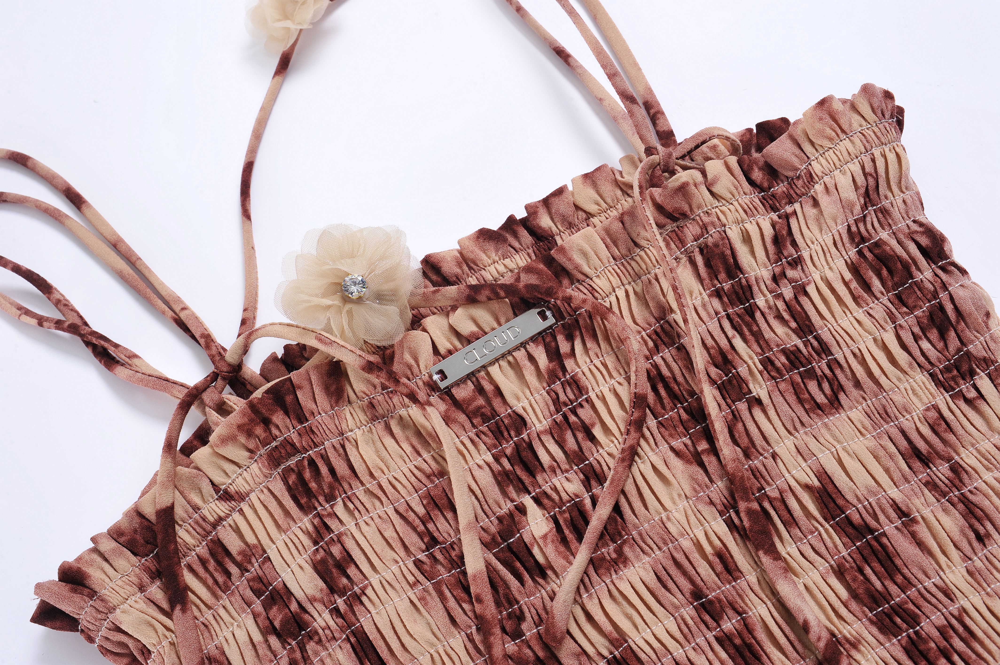CLOUDSEASON暈染碎花吊帶裙雪紡連衣裙女夏季新品高腰a字法式長裙