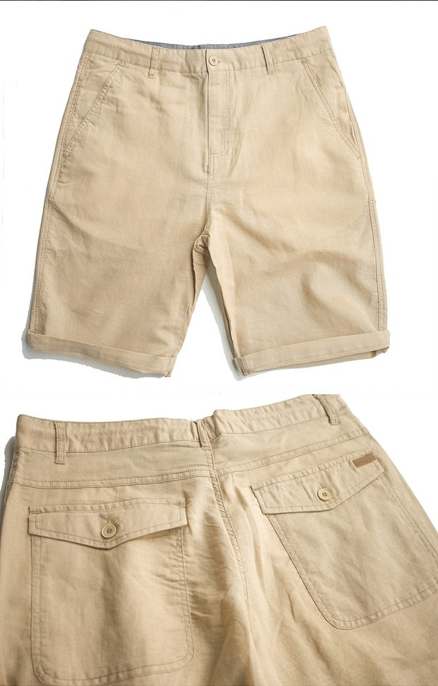 夏季極簡休閑工裝棉麻短褲五分褲男潮牌青年直筒柔軟輕薄清涼透氣