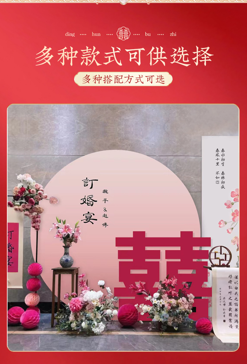 訂婚宴布置裝飾KT板擺臺定親背景墻全套氣球場景簡約用品儀式感中
