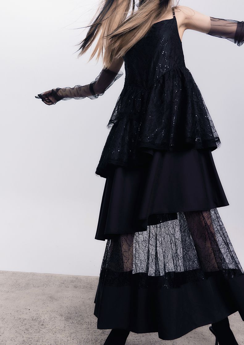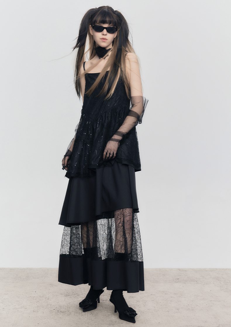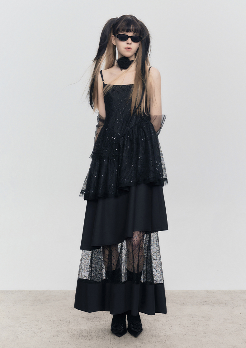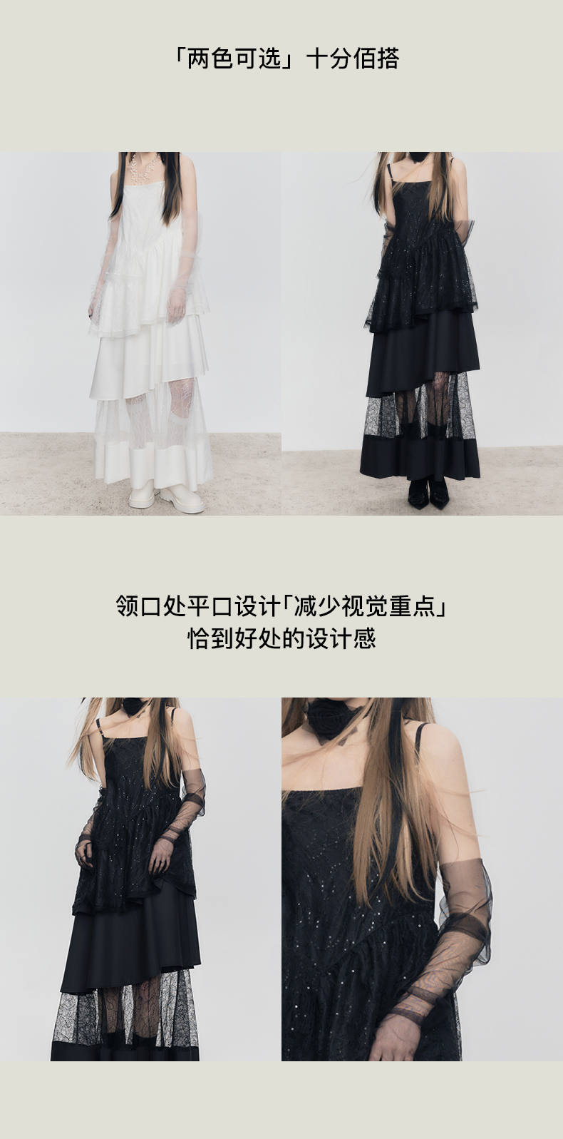 AnnoMundi創世紀元 星塵疊影 設計感亮片莫代爾蕾絲吊帶連衣裙女