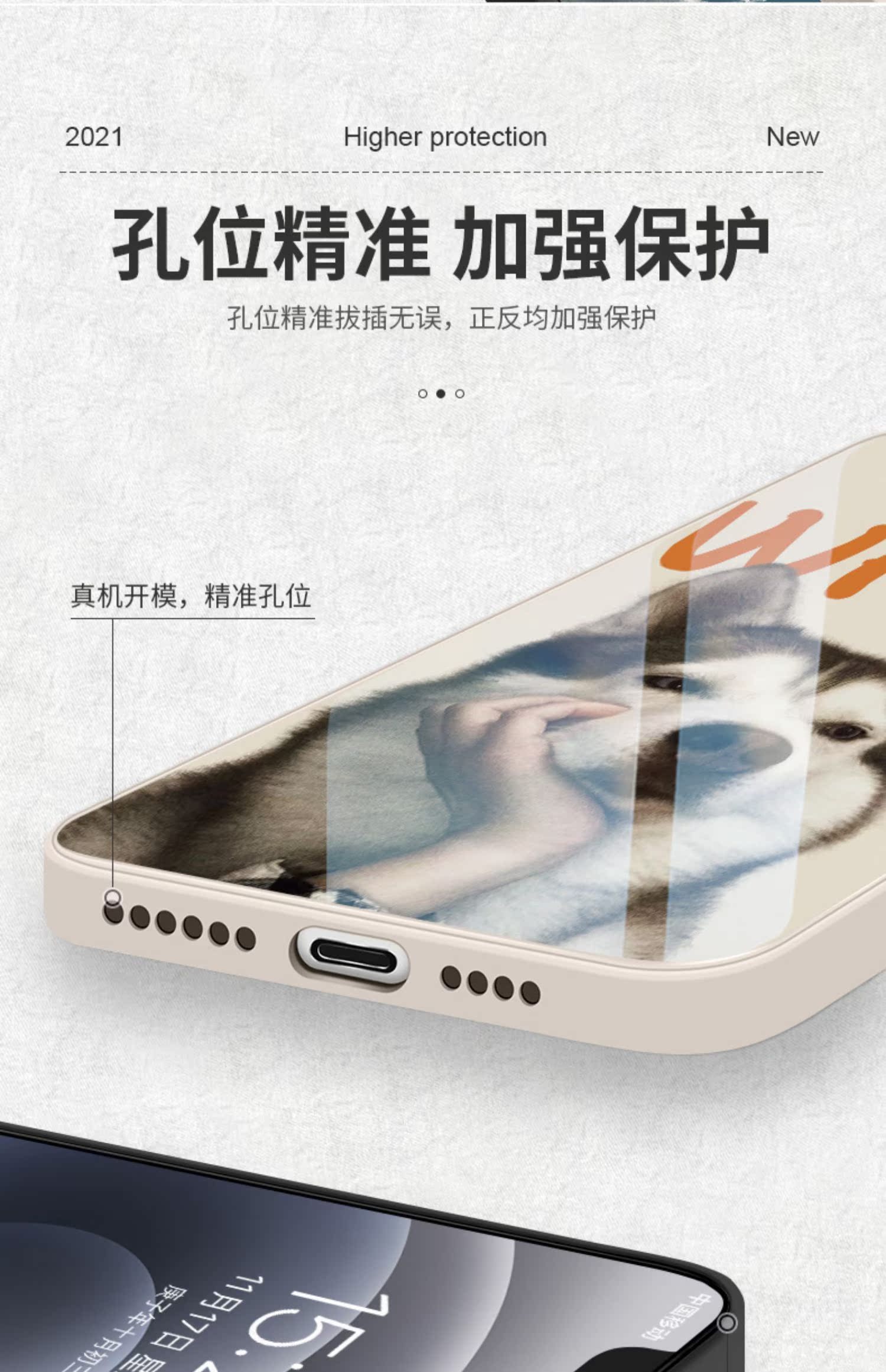 酷圖適用蘋果13promax手機殼新款14液態硅膠玻璃保護套plue全包防摔XR高級感卡通哈士奇12網紅男女11可愛搞怪