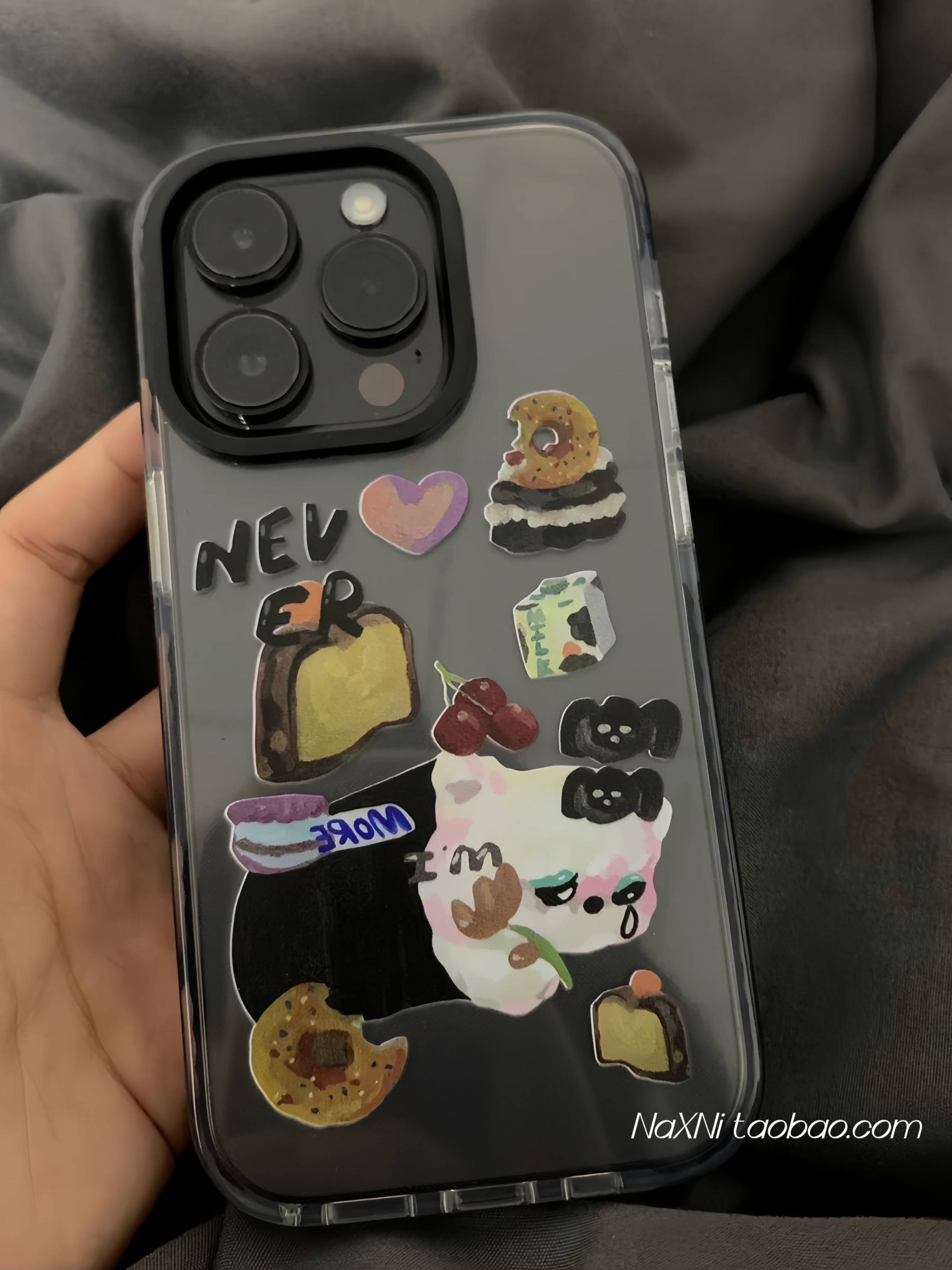 ins個性創意黑粉涂鴉愛心適用iPhone15ProMax手機殼卡通蘋果14透明黑邊防摔條xr/11硅膠軟殼