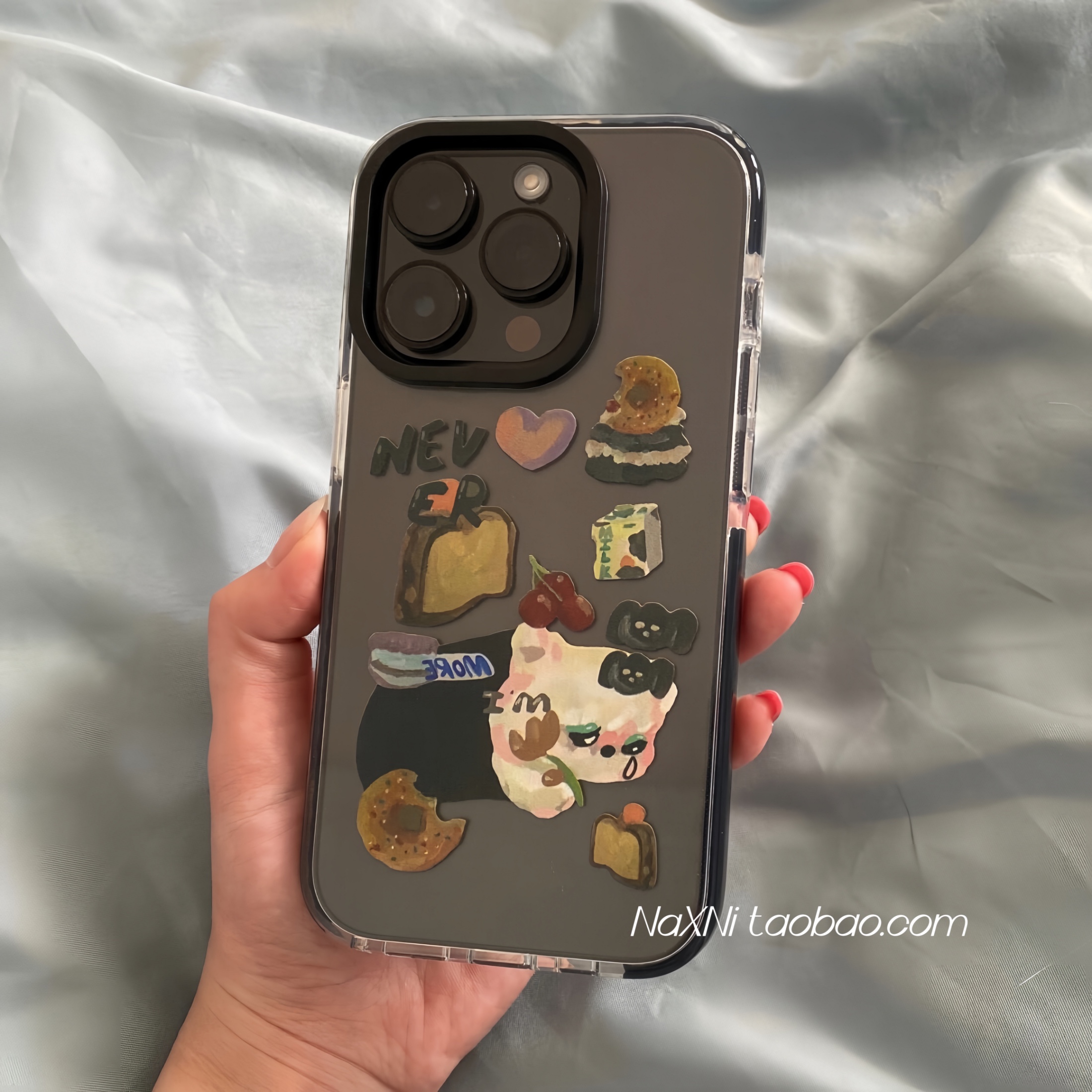 Lucky歡樂動物派對適用iPhone15ProMax手機殼卡通蘋果14透明黑邊防摔條xr/11硅膠軟殼