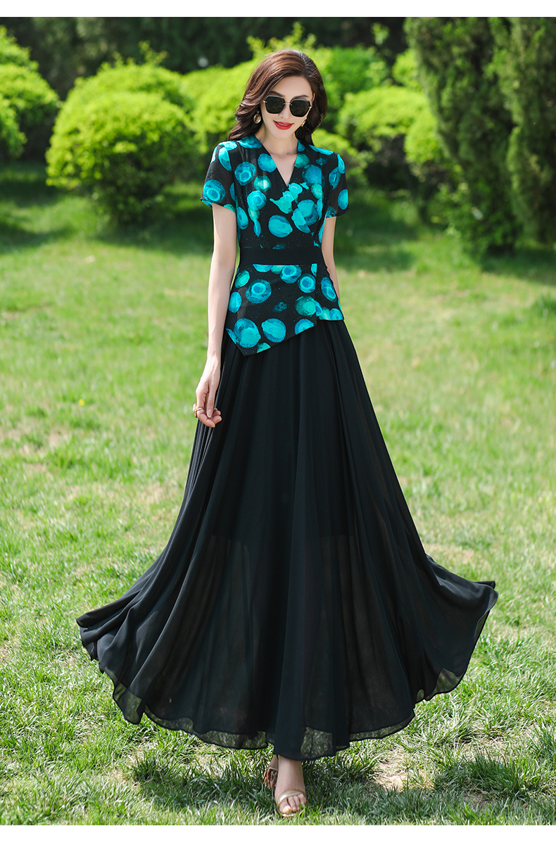 白色2023夏季新款雪紡碎花氣質長裙
