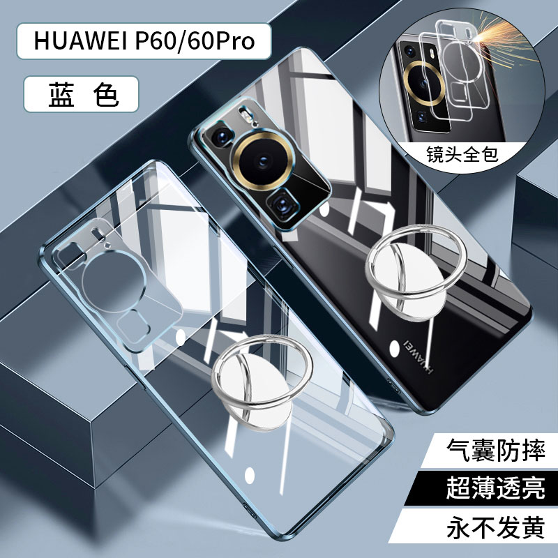 熱迪適用于華為p60手機殼p60pro透明防摔全包邊p60art硅膠軟殼創意自帶一體指環扣支架保護鏡頭可車載磁吸