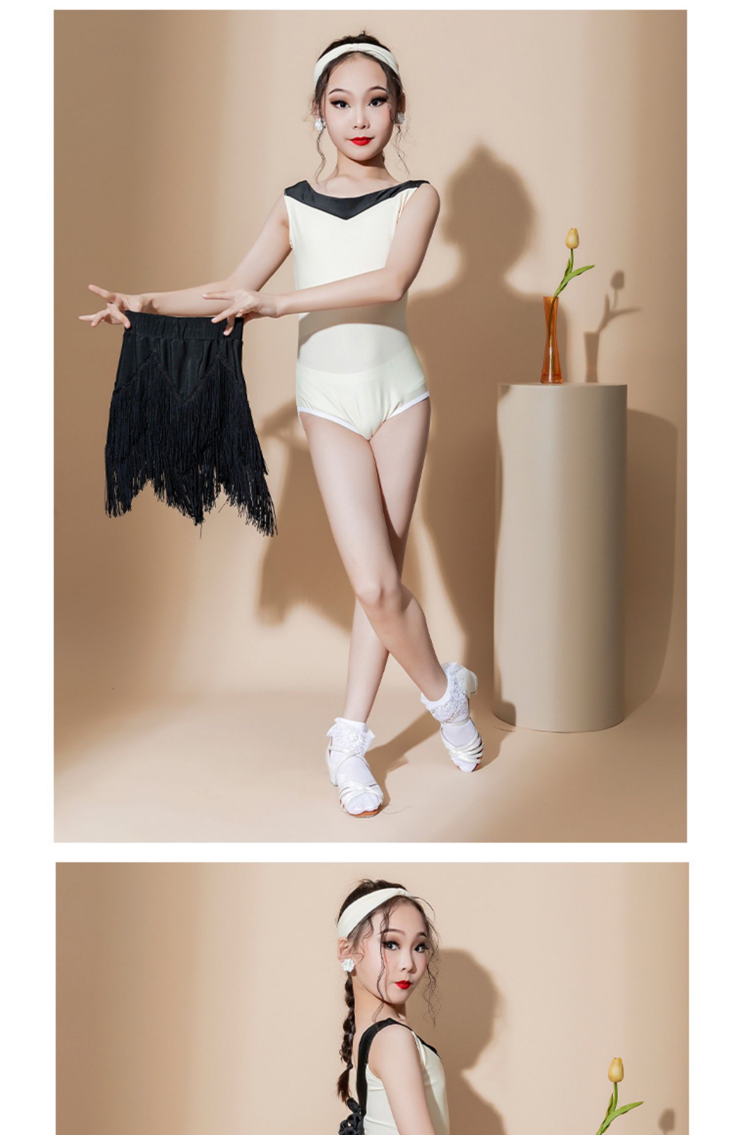 見蒂2023春夏新款拉丁舞服裝女兒童練功服兒童白色吊帶演出舞蹈服