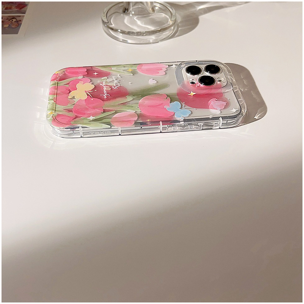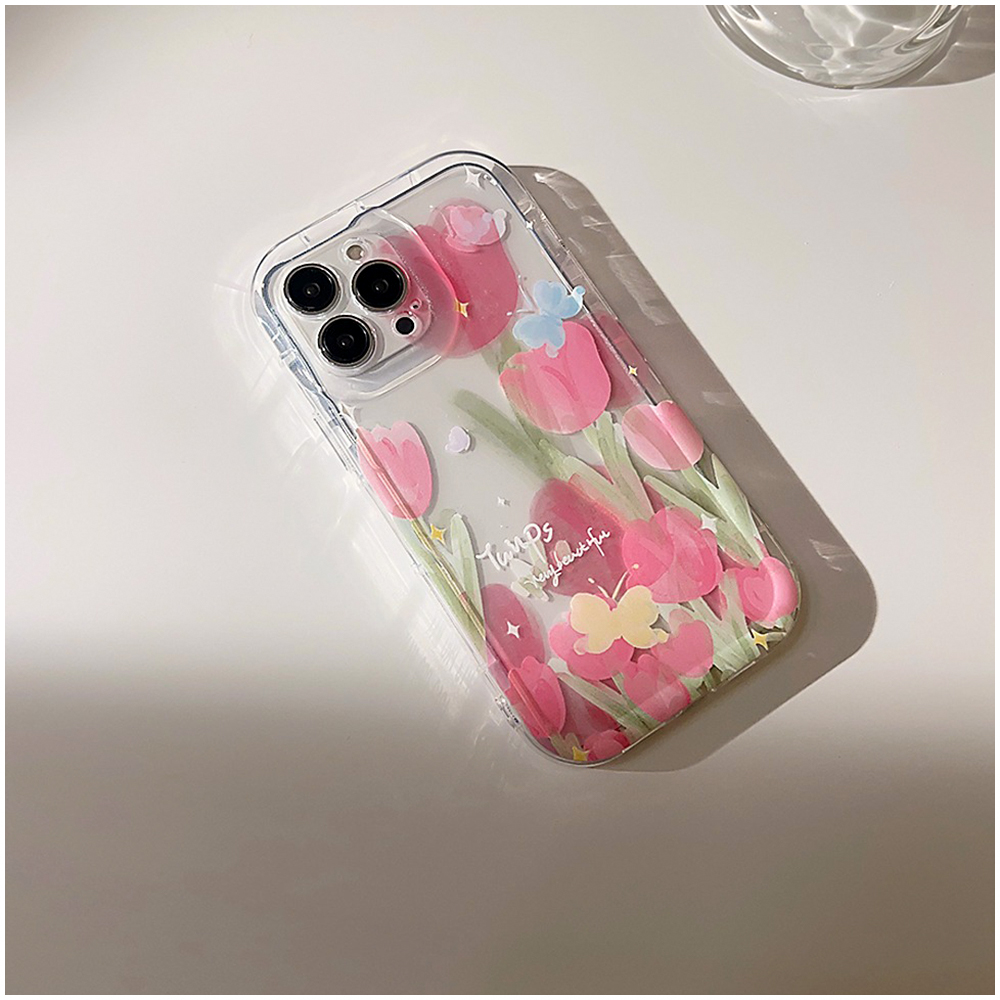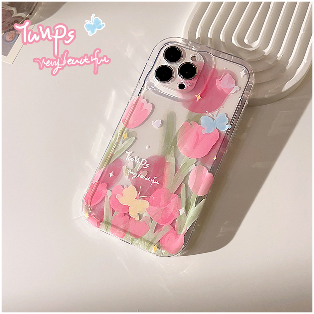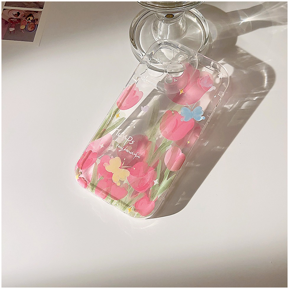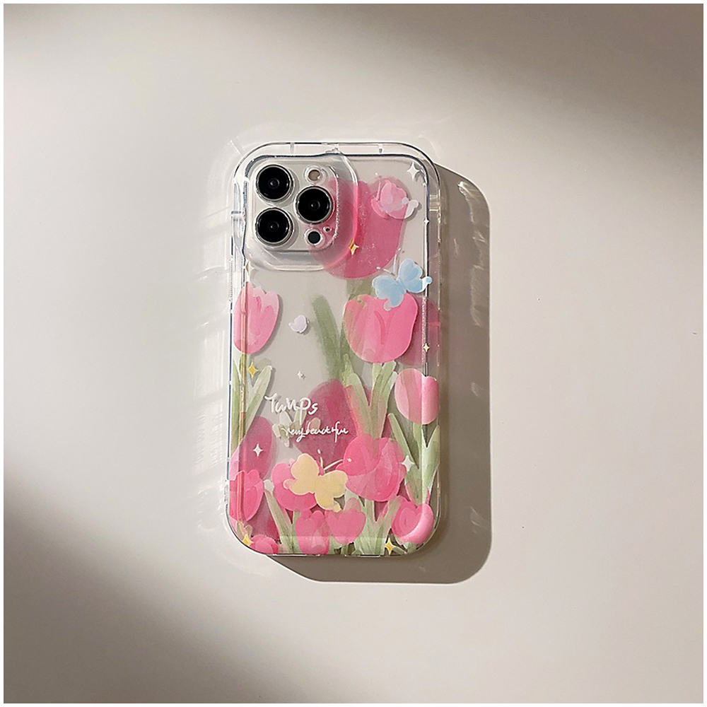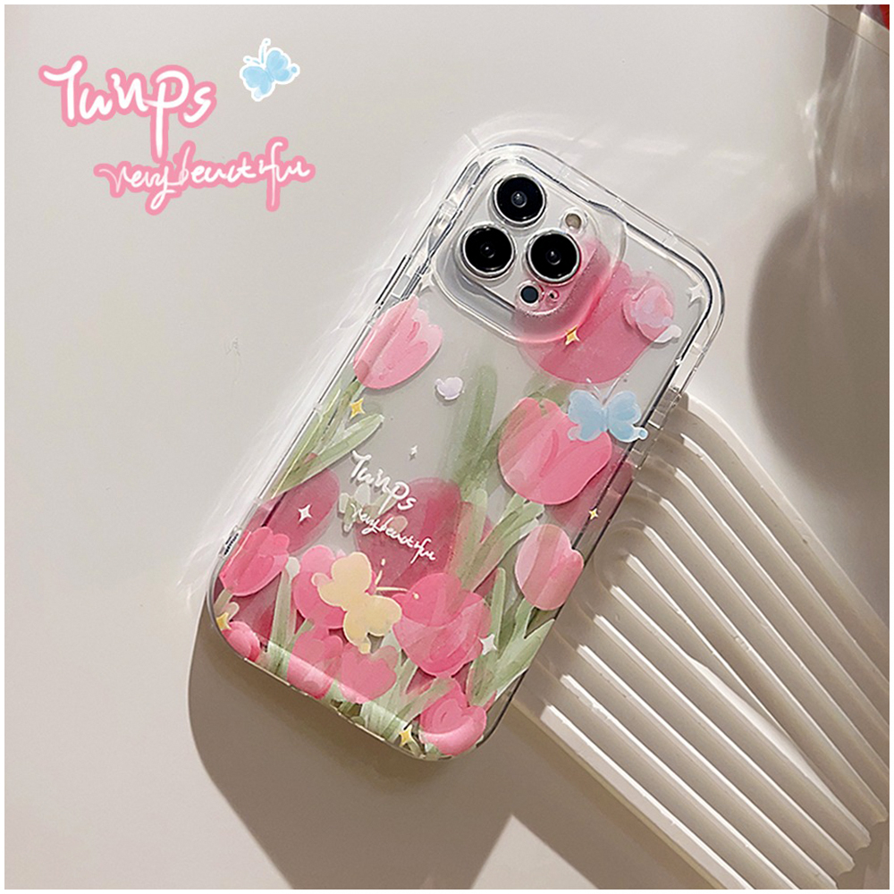 適用蘋果14promax氣囊手機殼iPhone13新款保護套ins12小清新蝴蝶11郁金香女早春全包plus軟殼12Pro高級感甜美