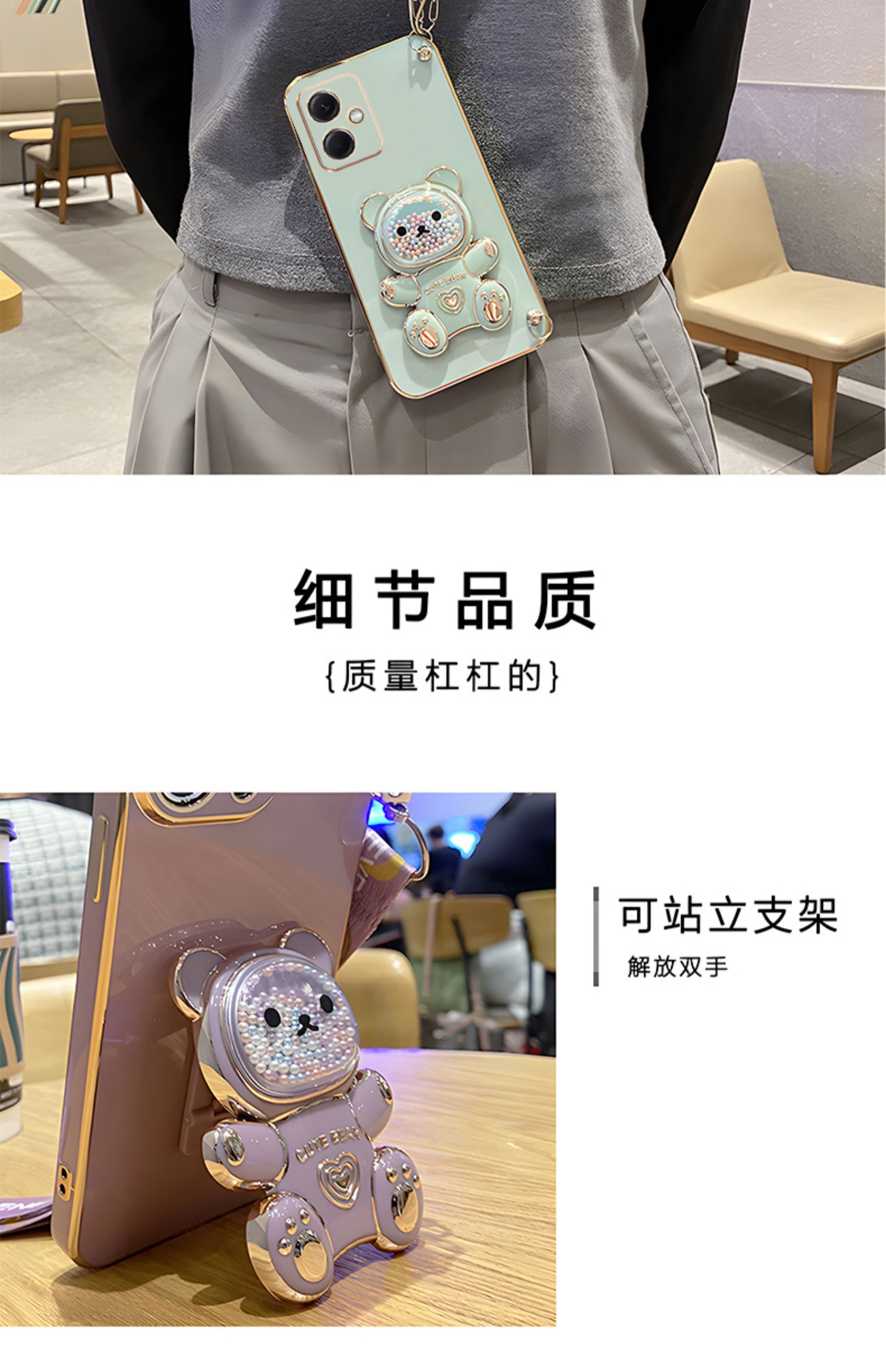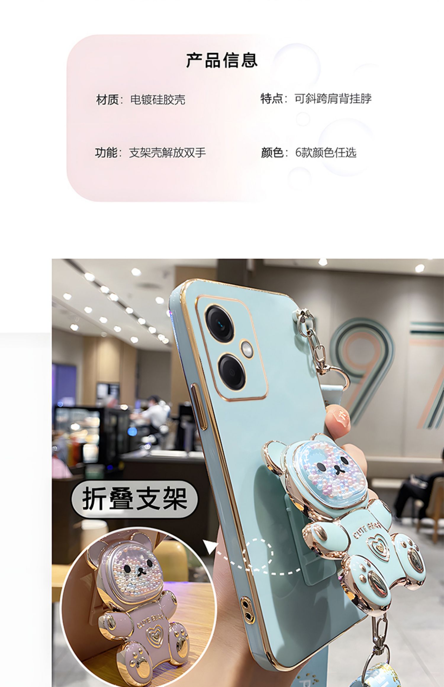 抱抱熊適用紅米note12pro手機殼新款支架note9女可愛note8軟硅膠note10鏡頭全包防摔note11斜挎可背10x帶掛繩