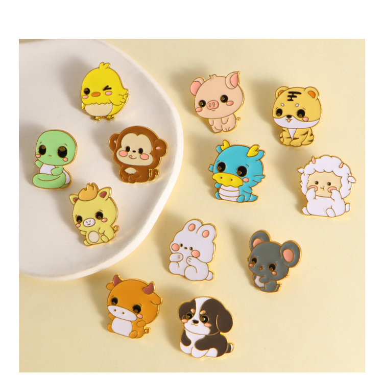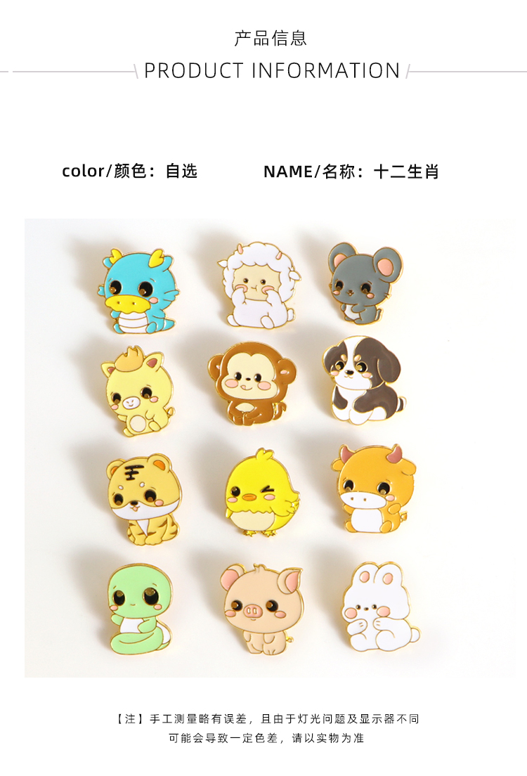 十二生肖金屬徽章原創設計卡通可愛男女情侶衣服書包裝飾掛件胸針