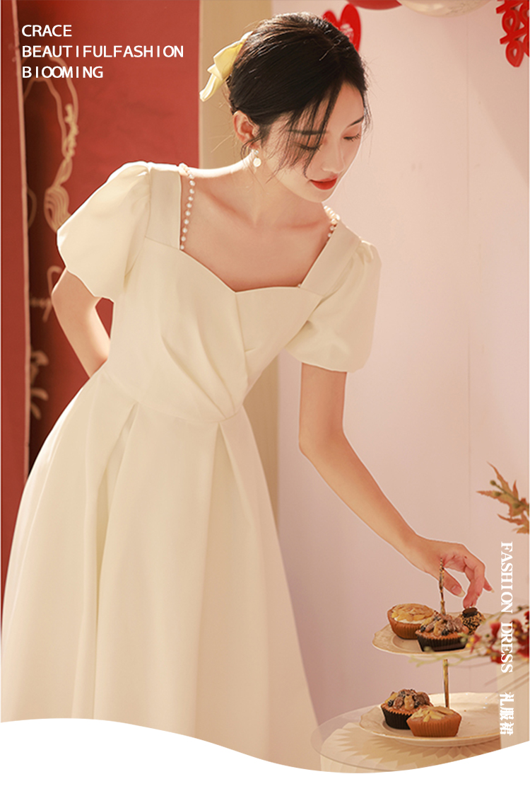 白色小禮服春夏訂婚晚禮服連衣裙