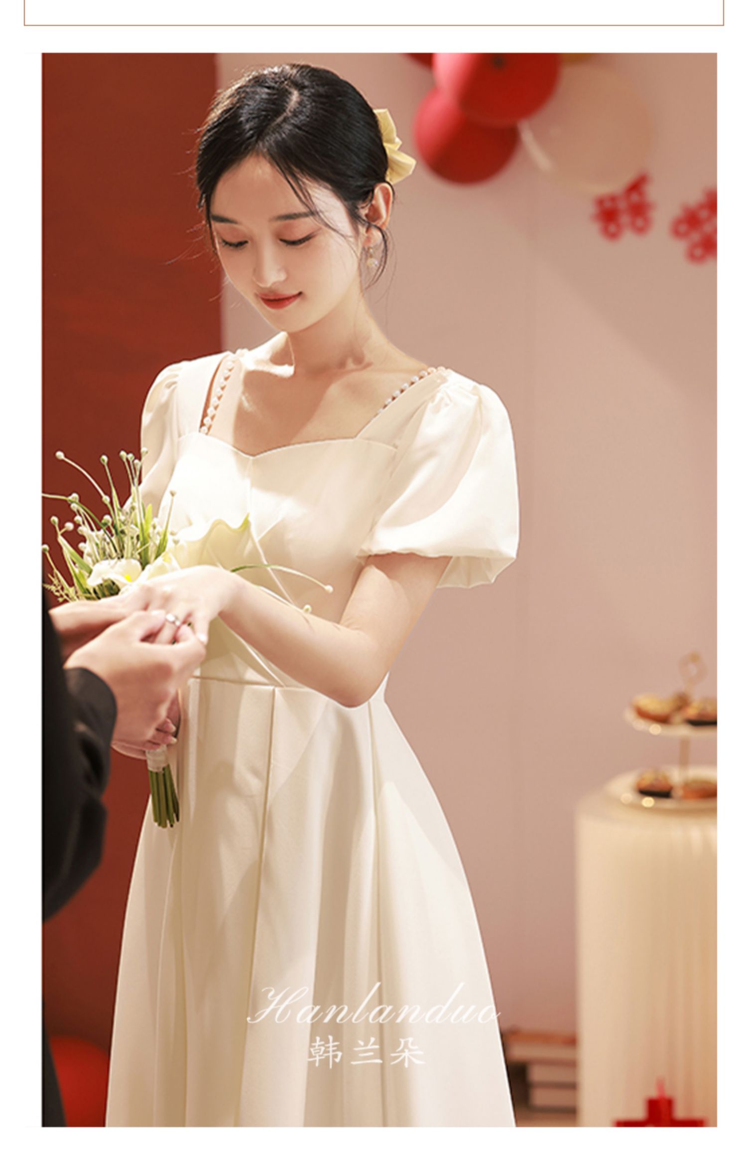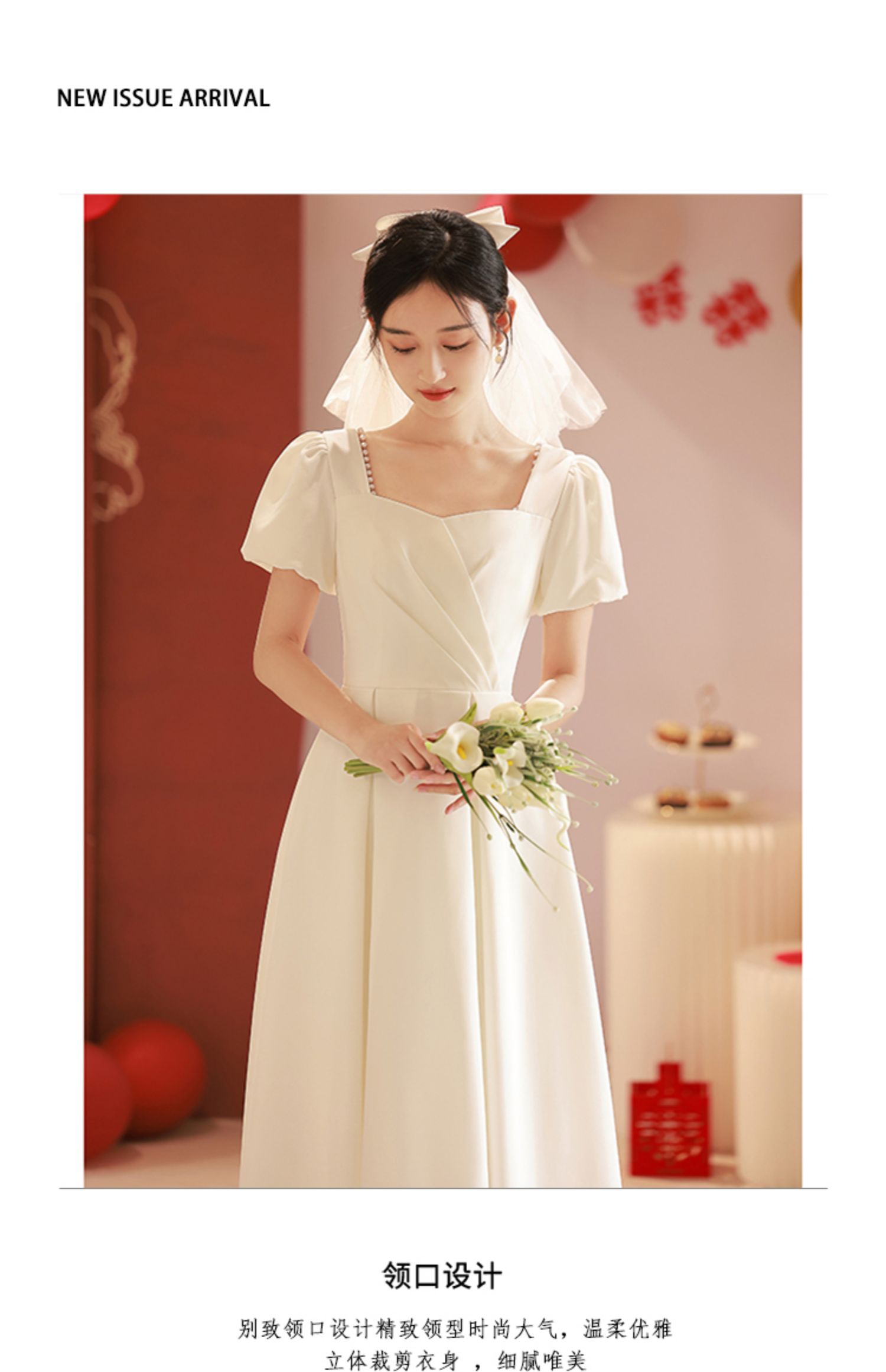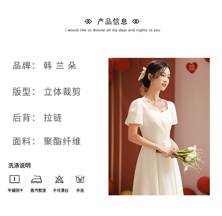 白色禮服日常可穿領證登記小白裙緞面高級感敬酒服回門訂婚連衣裙