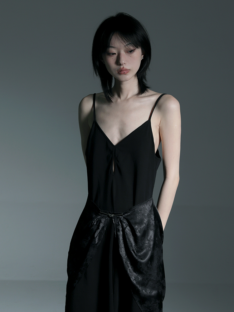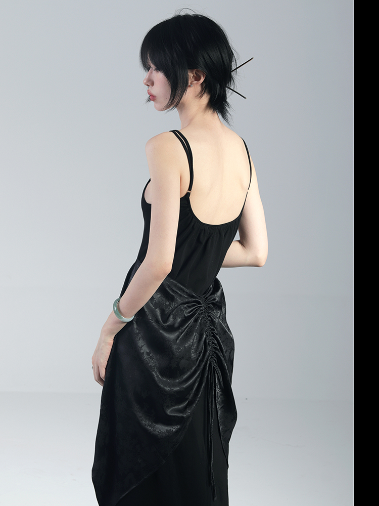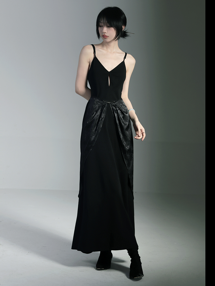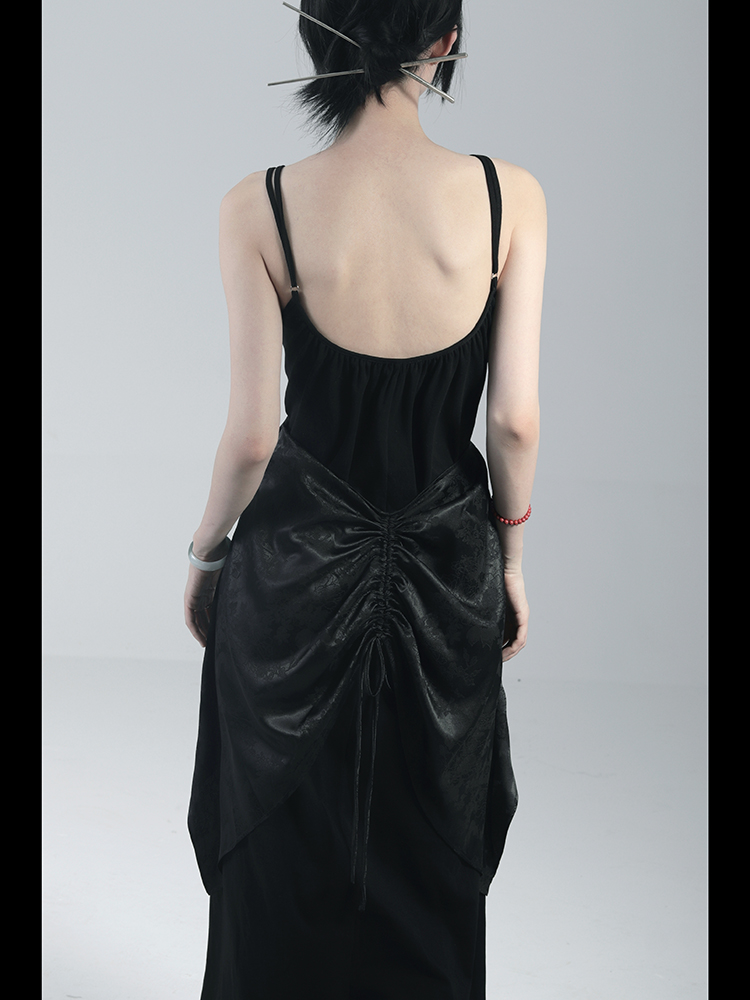 青田緒一【鴉鳴】2023年夏季新品原創設計感小眾長款吊帶連衣裙女