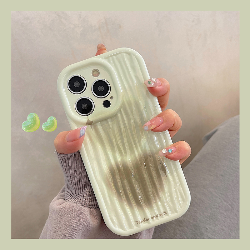 小眾ins奶白純色水波紋創意手機殼
