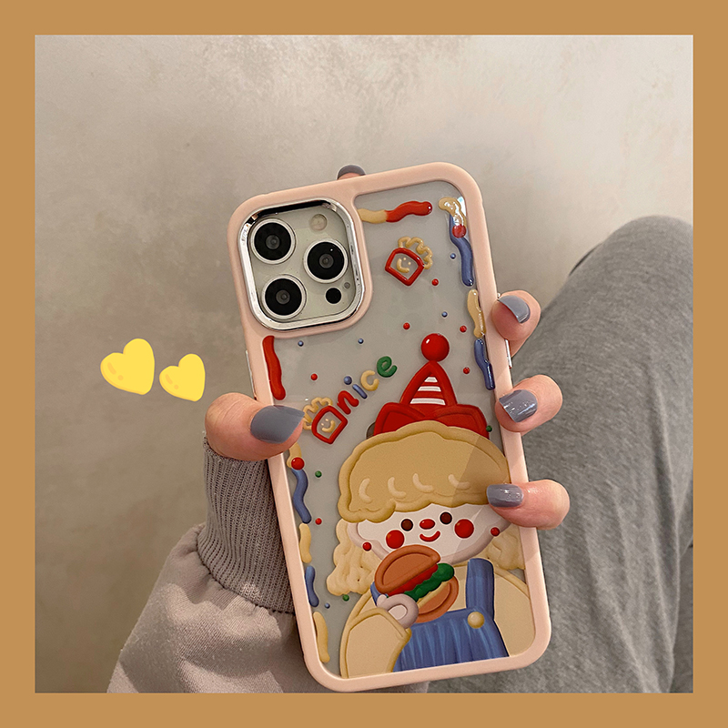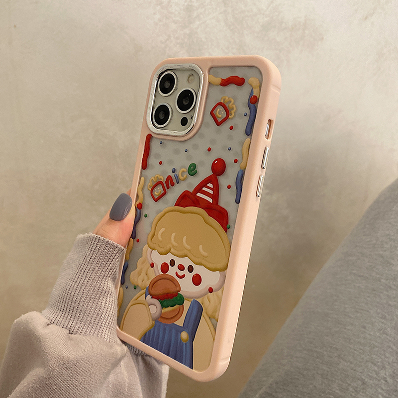 涂鴉卡通吃漢堡女孩適用蘋果14pro手機殼iphone13個性創意12promax電鍍11超火女新款max小眾高級感網紅保護套