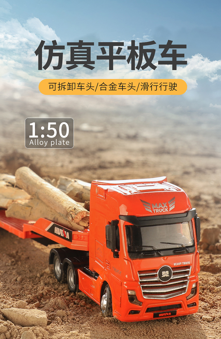 仿真合金拖車模型兒童工程車玩具運輸車平板大卡車男孩寶寶箱貨車