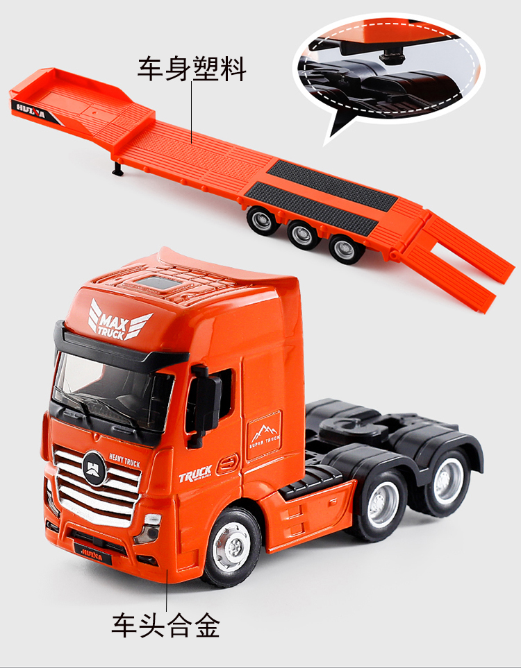 兒童拖車玩具合金工程運輸車男孩仿真半掛平板拖頭車集裝箱車模型