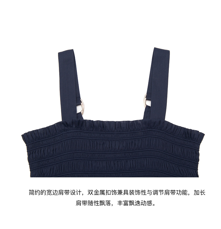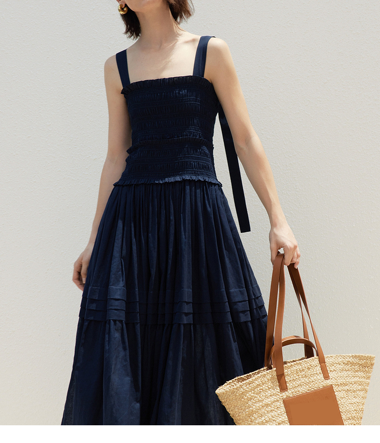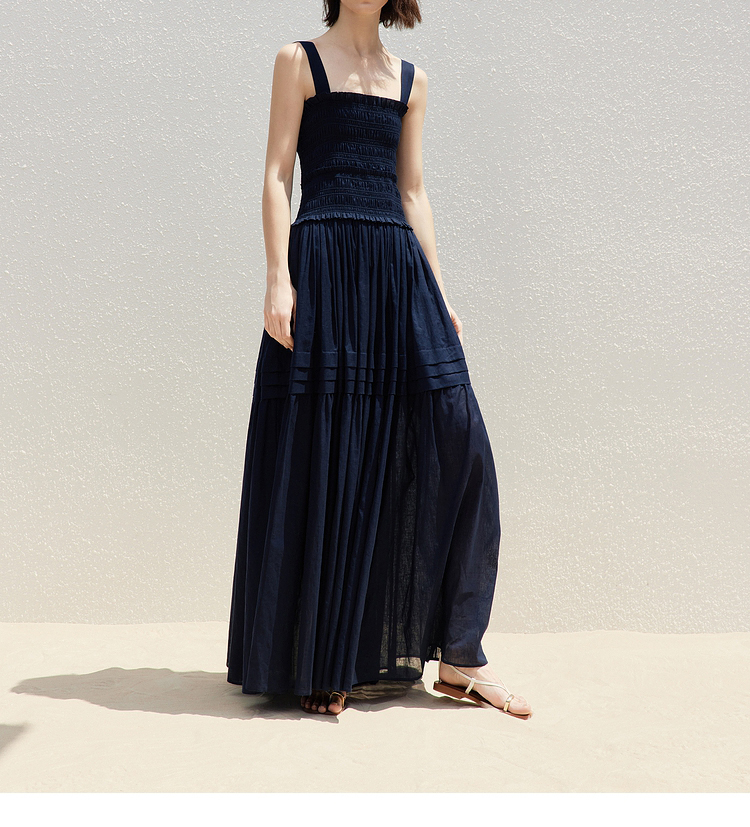 商場同款2023夏季法式氣質塔克褶長裙無袖吊帶連衣裙女MBC2DRS063