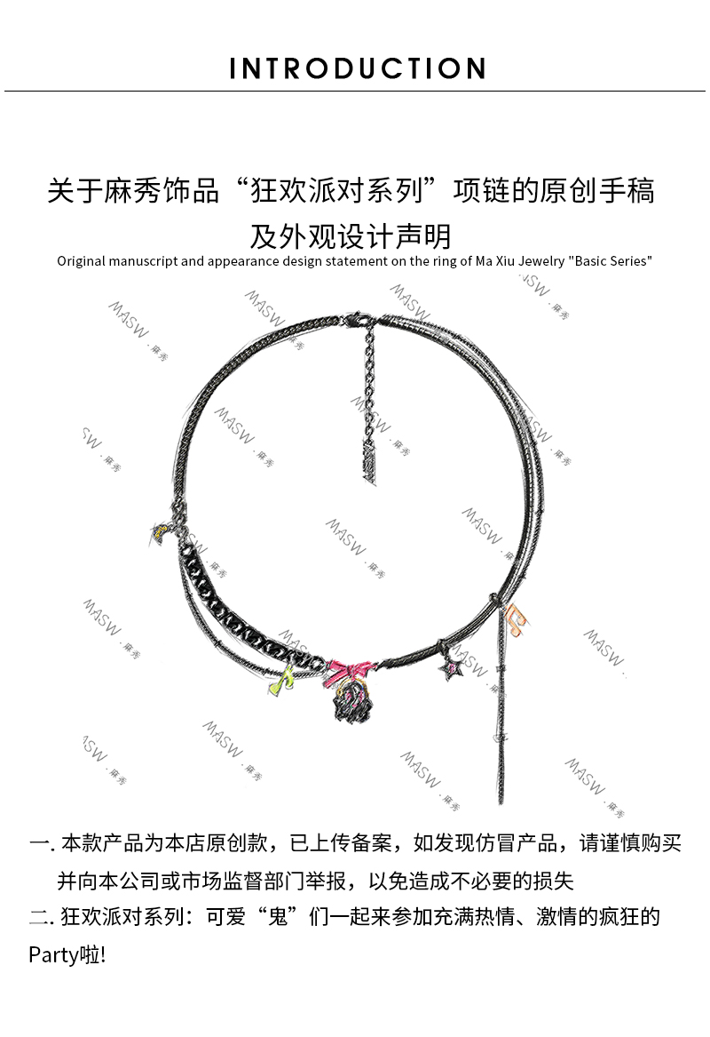 MASW麻秀原創小眾設計可愛鬼音符幽靈項鏈甜酷風小惡魔高級感頸鏈