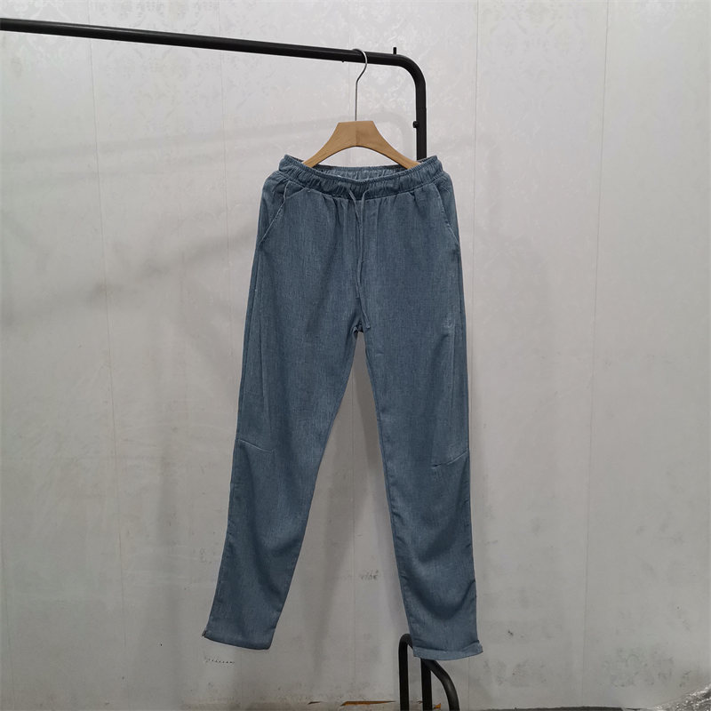 春夏薄款大碼顯瘦小腳休閑長褲亞麻褲男潮流中國風棉麻寬松哈倫褲