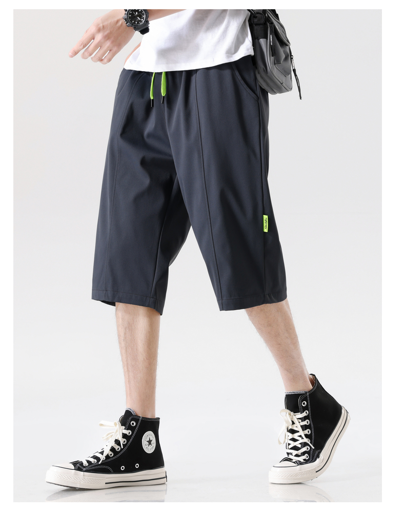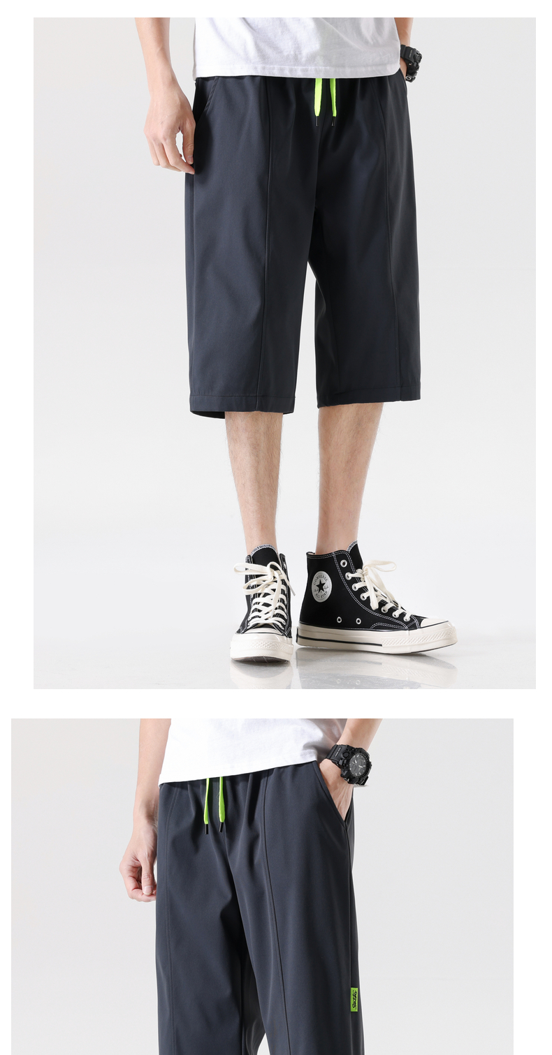 男士黑色冰絲短褲男休閑寬松運動速干褲男款2023新款男褲夏季薄款