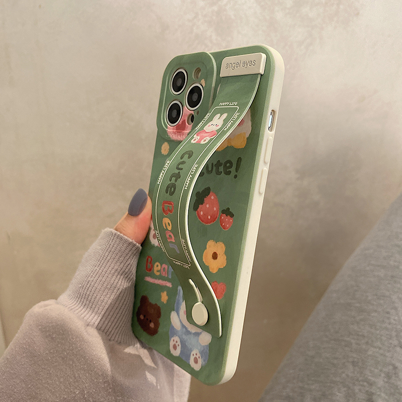 夏日涂鴉油畫兔子腕帶適用蘋果iphone14promax手機殼13pro創意網紅12磨砂11小眾高級感max可愛個性新款保護套