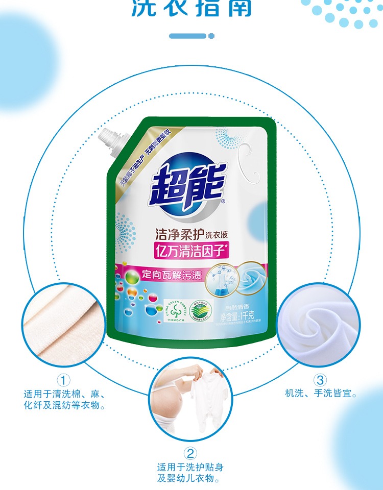 超能洗衣液8袋裝補充液16斤香味持久家庭裝實惠裝香味持久整箱批