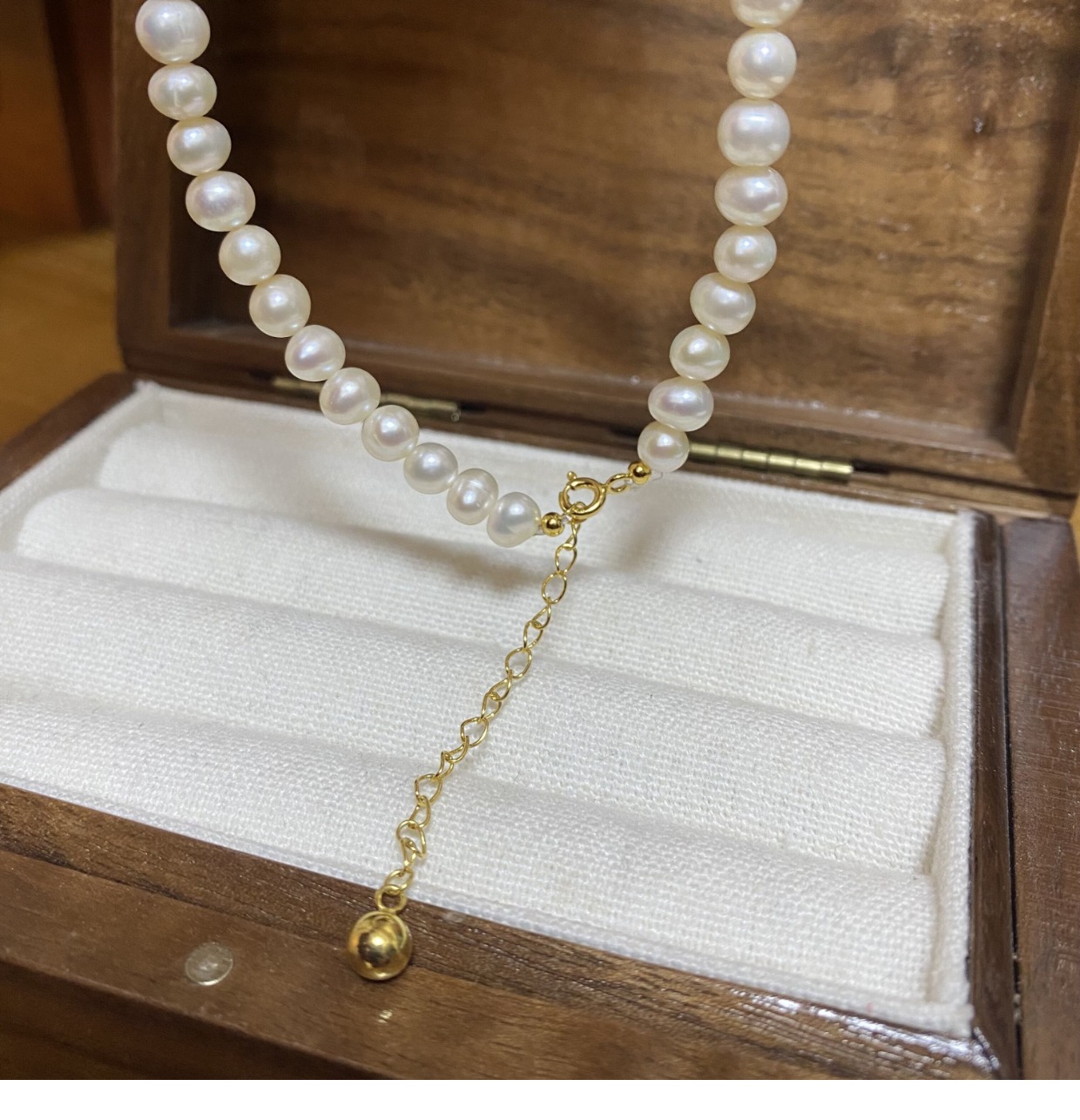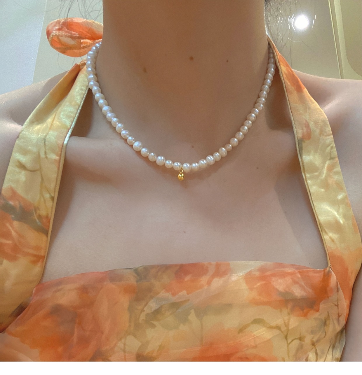 金伶 925銀天然淡水珍珠項鏈 choker復古金珠吊墜鎖骨鏈飾品女
