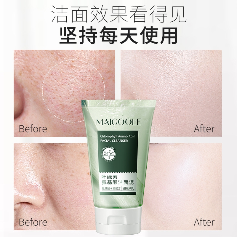 葉綠素氨基酸細嫩潔面乳潔面泥女收縮毛孔控油深層清潔正品旗艦店