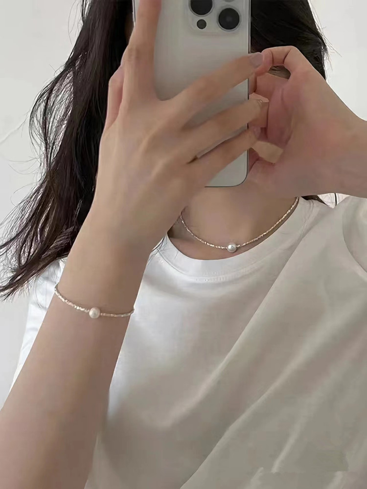 碎銀珍珠項鏈999純銀2023年新款輕奢小眾設計簡約銀網紅爆款項鏈