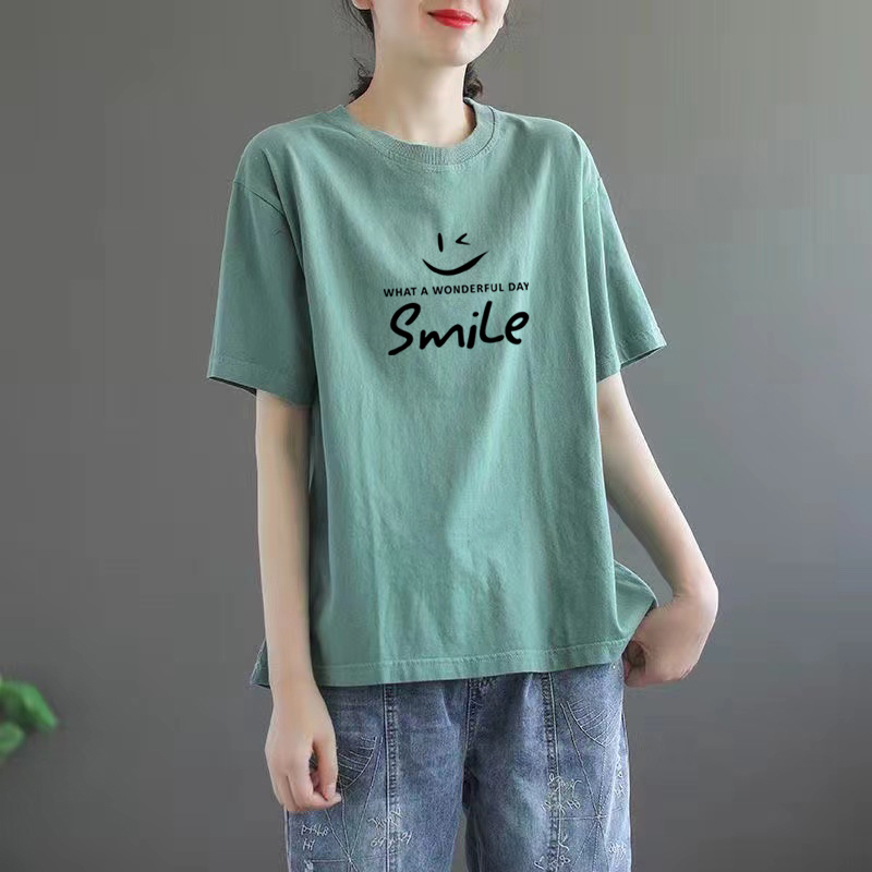 外貿出口女裝品牌清倉撿漏文藝休閑短袖T恤夏季印花純棉顯瘦上衣
