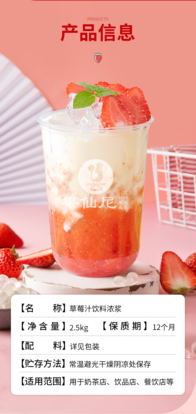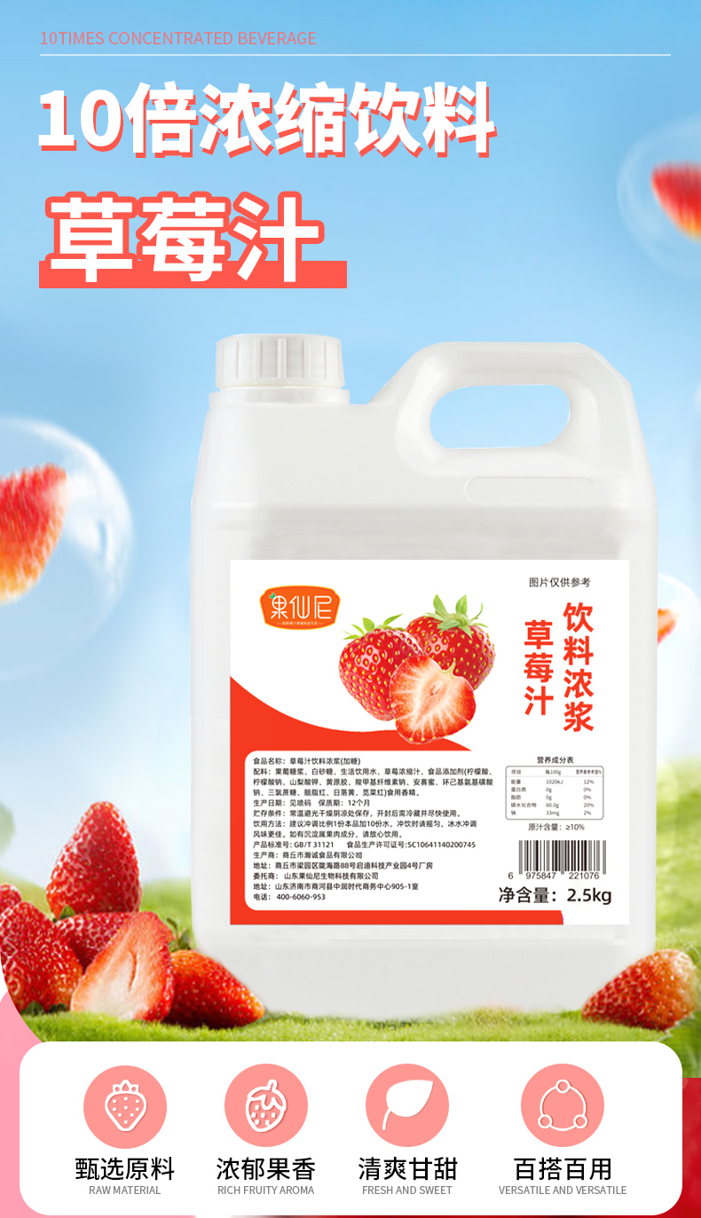 果仙尼草莓金桔檸檬柳橙濃縮果汁10倍飲料濃漿商用奶茶店專用5斤