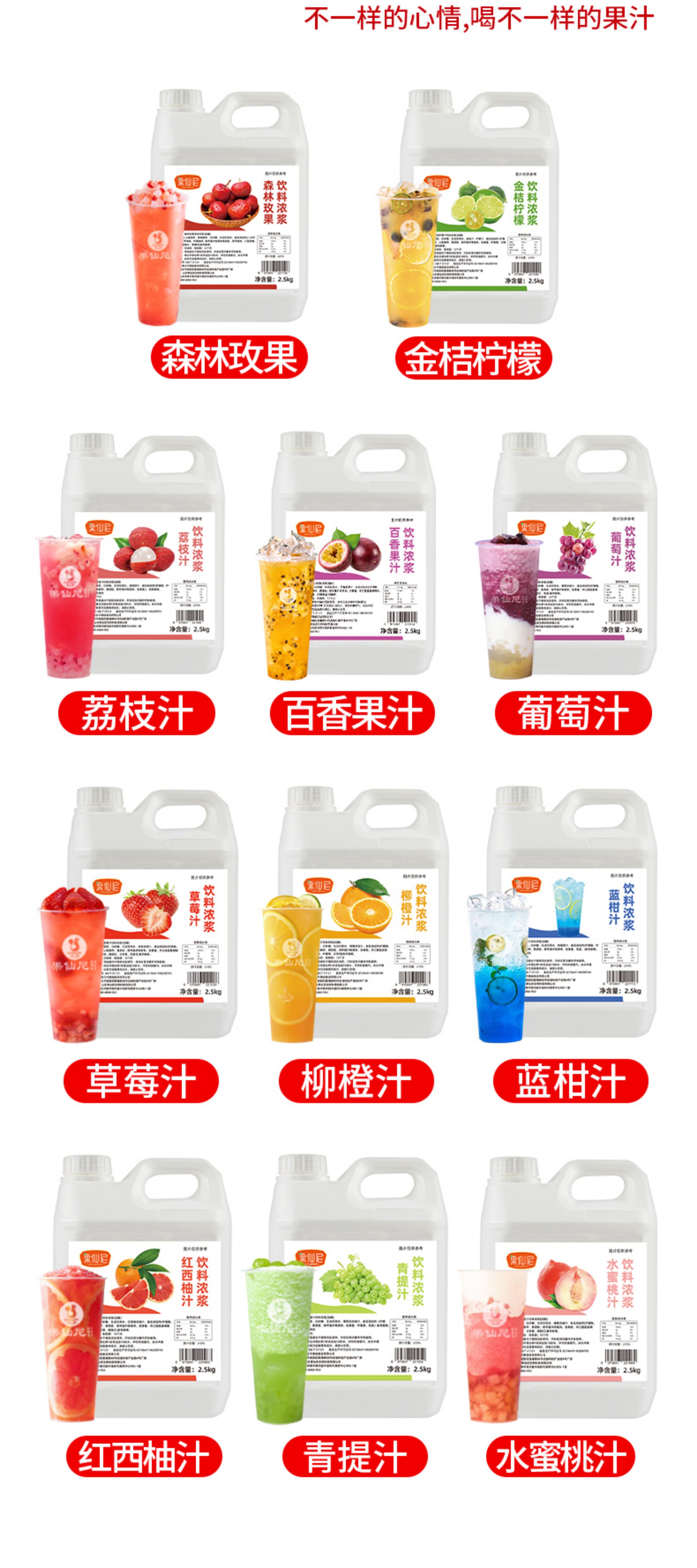 果仙尼紅西柚汁濃縮果汁2.5kg 滿杯紅柚商用飲料濃漿奶茶店專用