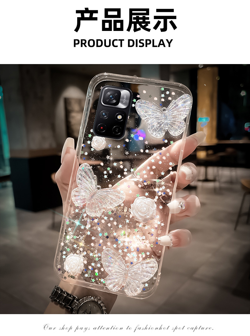 高級感滴膠閃粉透明玫瑰適用redmi紅米NOTE11TPRO手機殼5G新款NOTE12PRO十+硅膠軟殼NOTE9 4G防摔10小米CIVI
