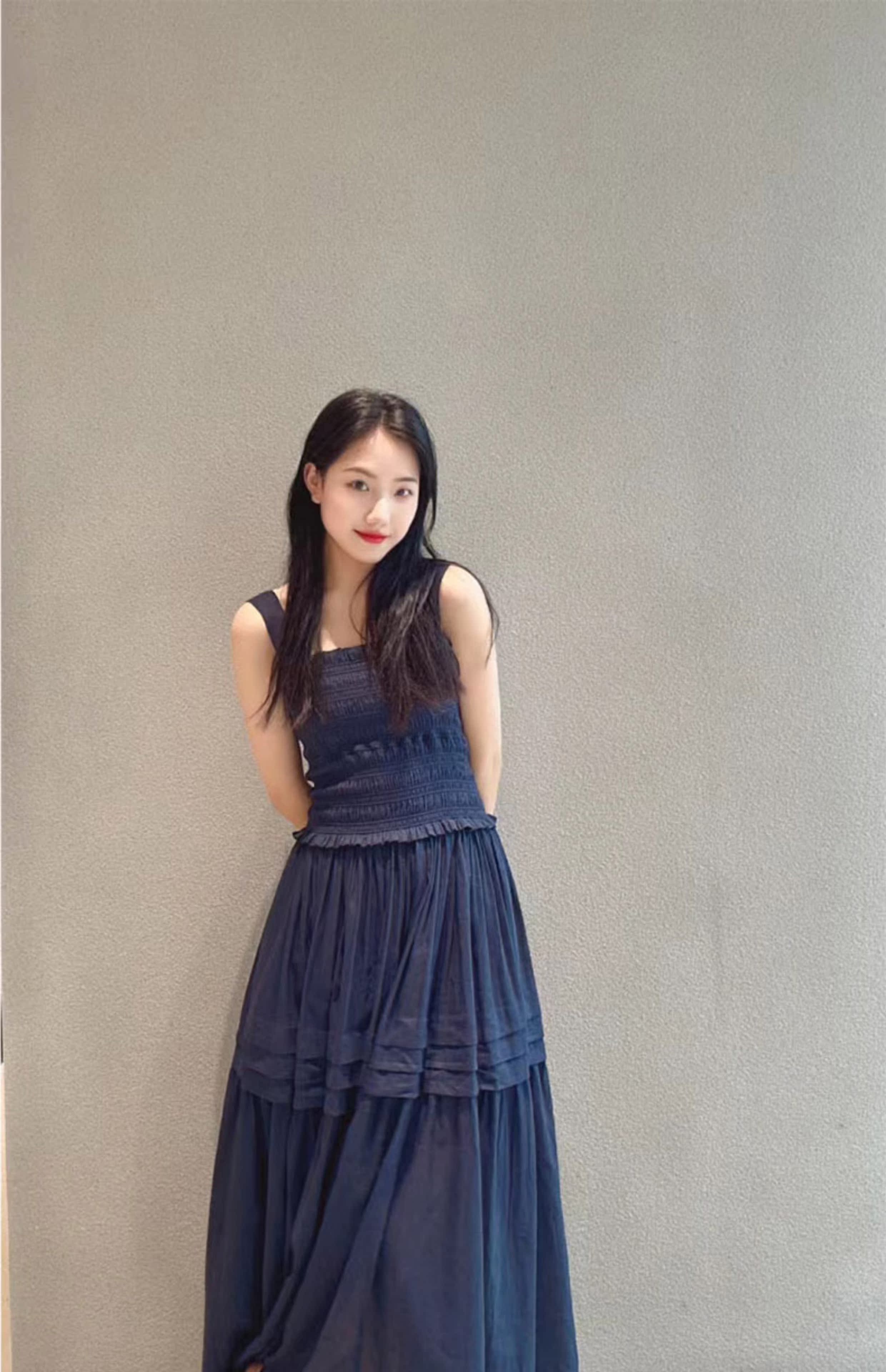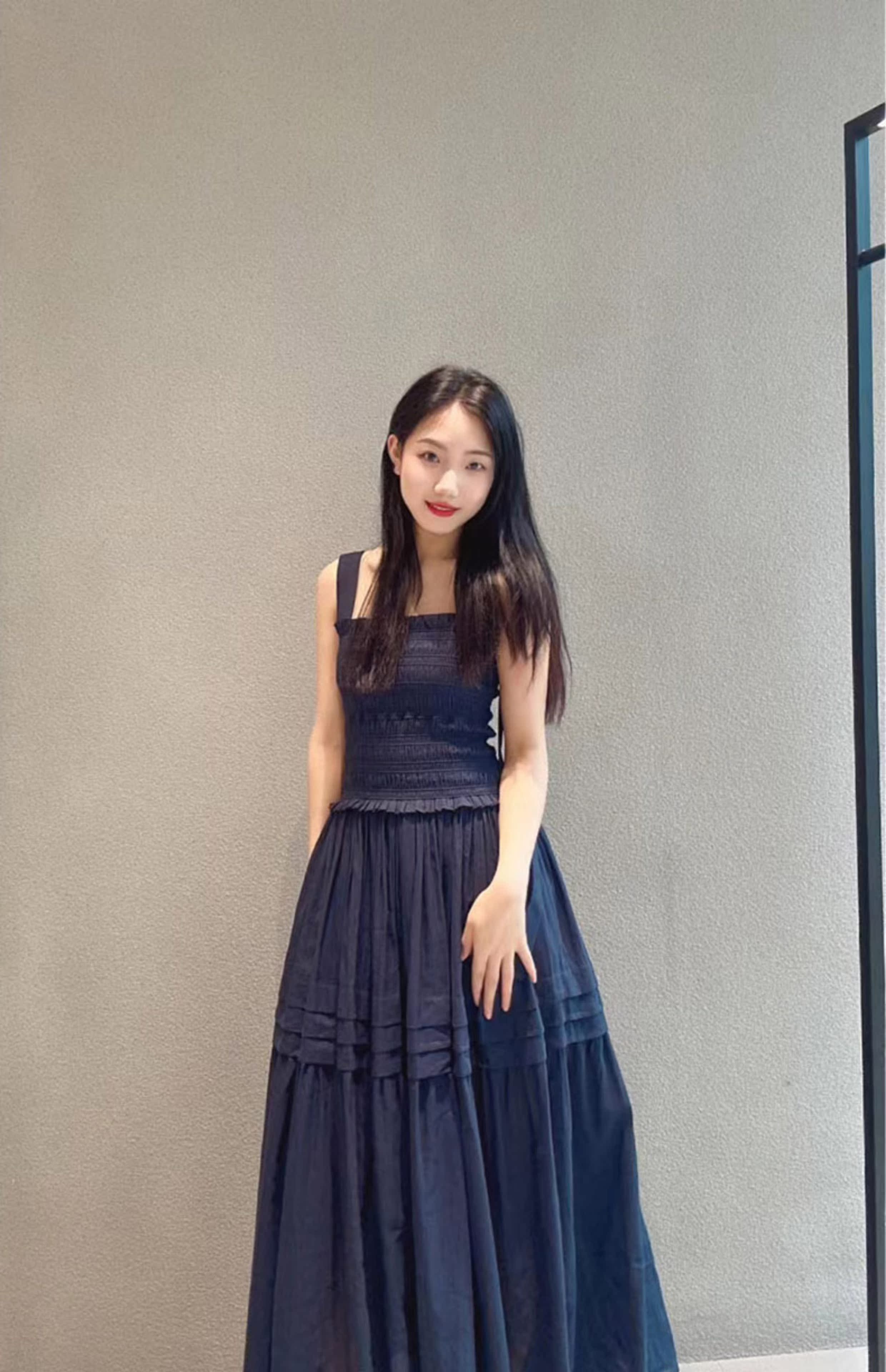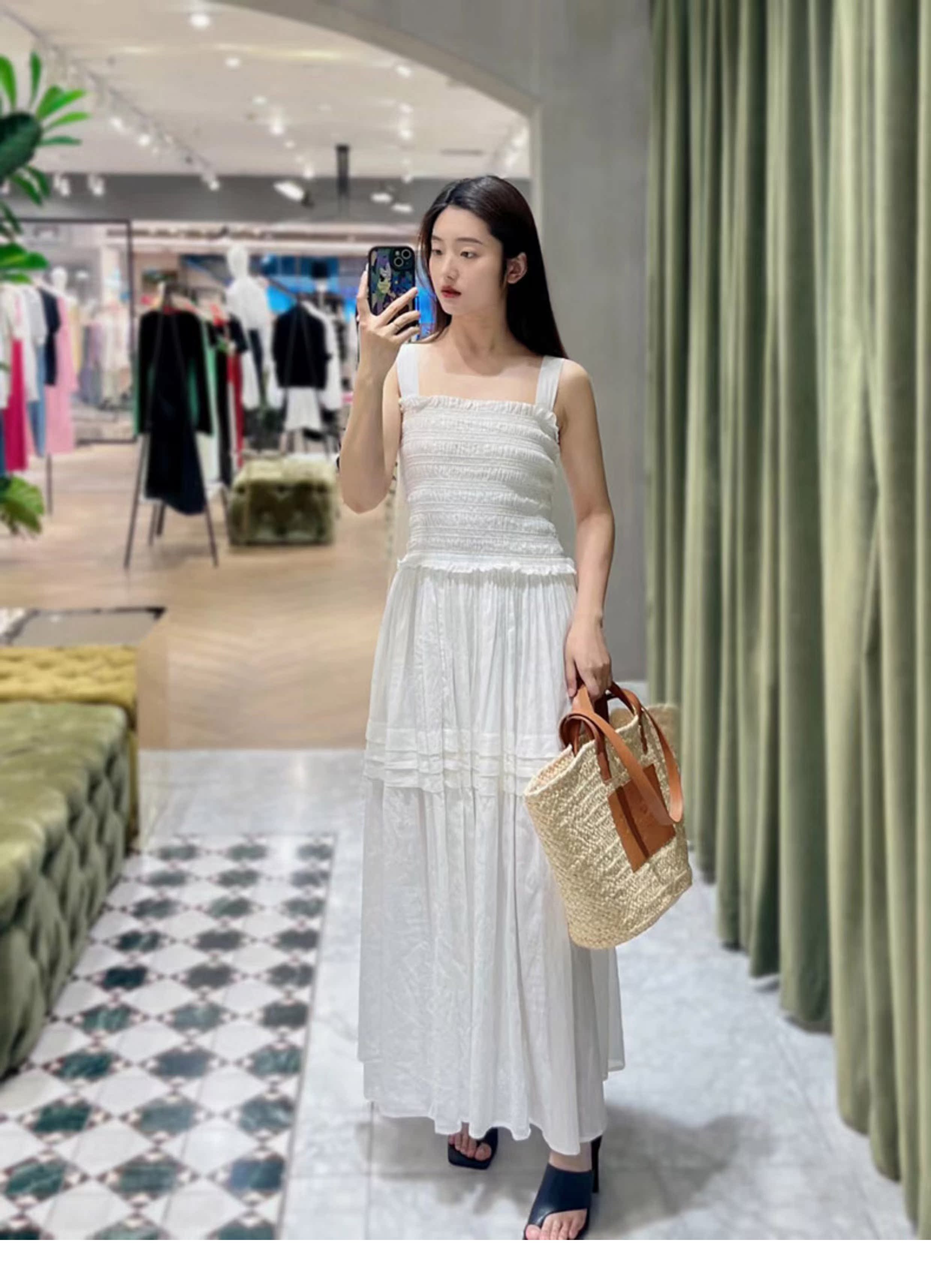 商場同款2023夏季法式氣質塔克褶長裙無袖吊帶連衣裙女MBC2DRS063