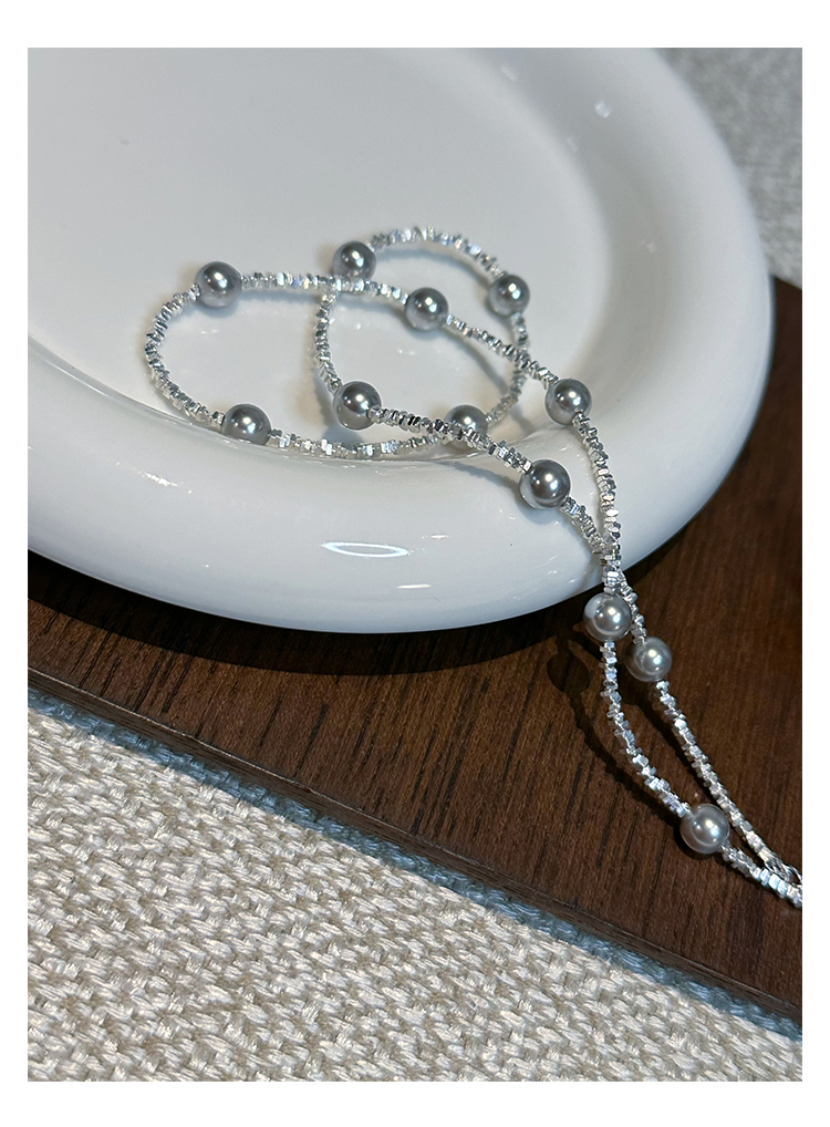 真多麻銀灰色珍珠項鏈女2023年新款輕奢小眾拼接設計高級感鎖骨鏈