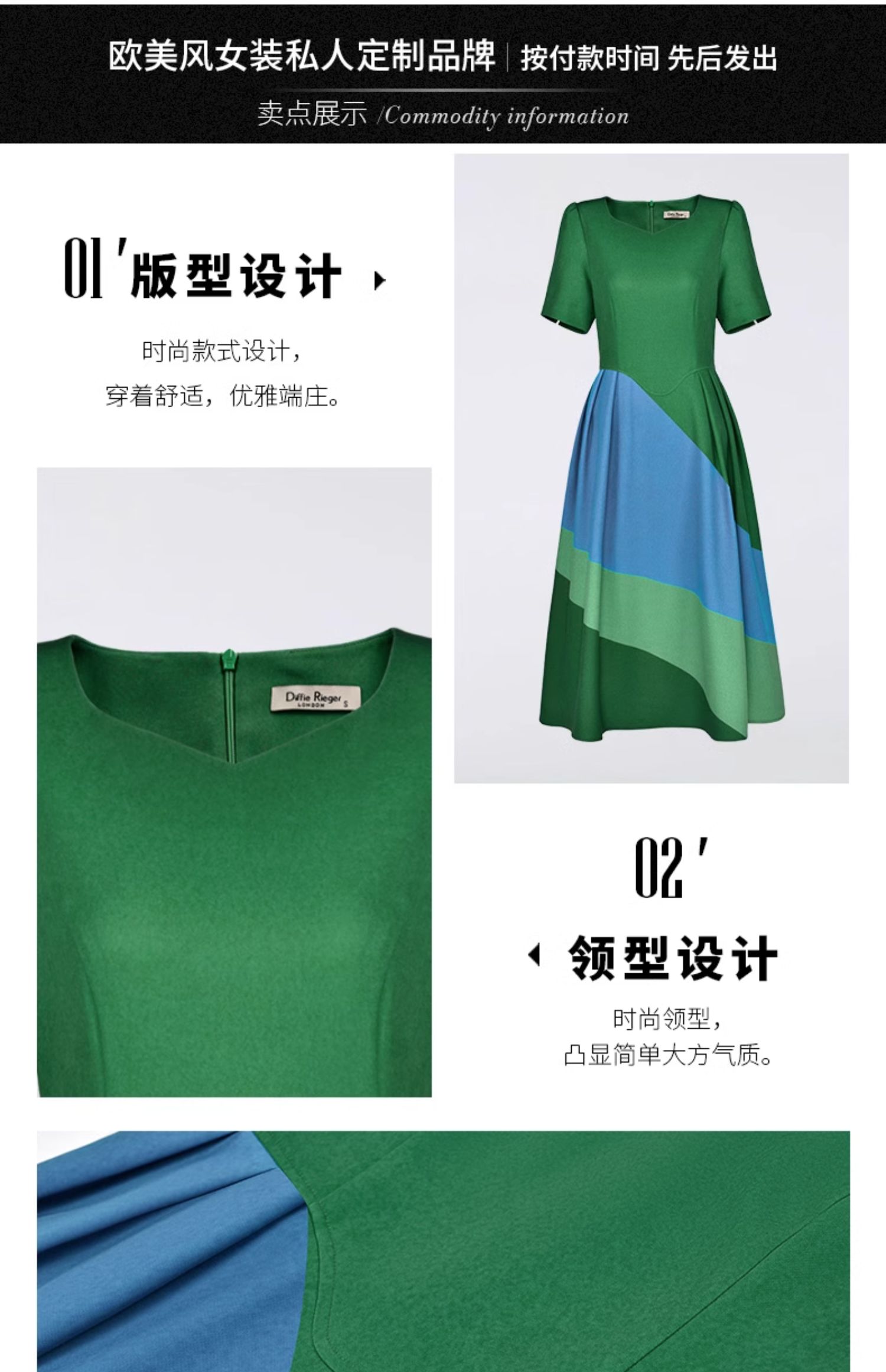 迪菲麗格短袖百褶綠色連衣裙女裝2023新款夏季法式氣質拼接西裝裙